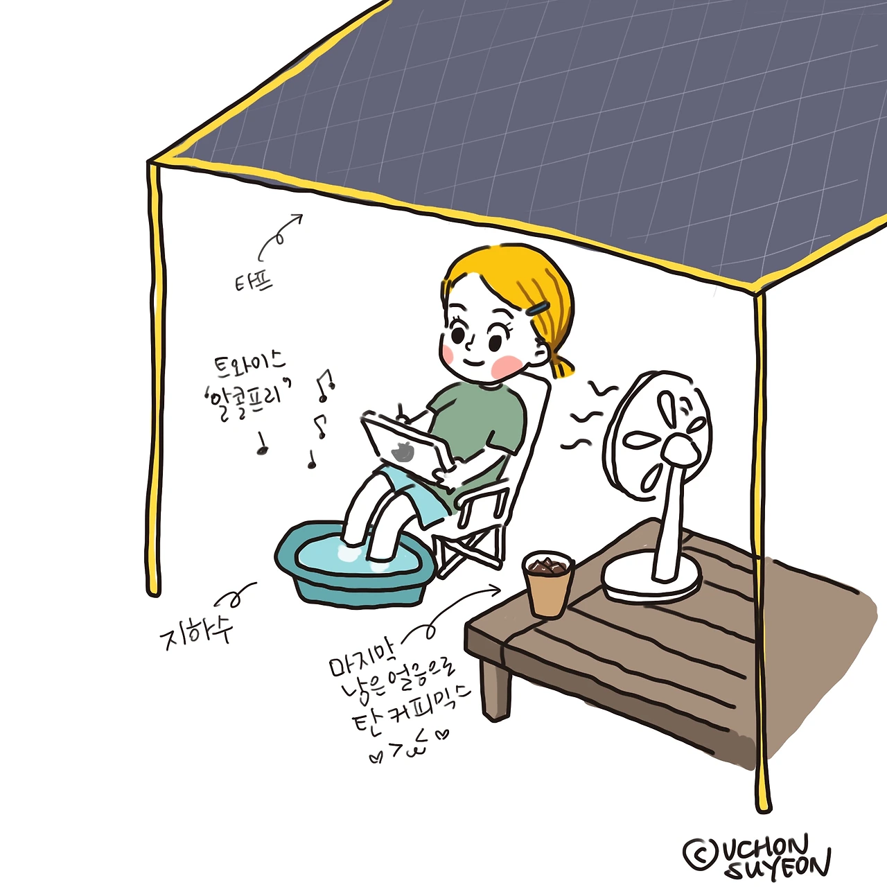 에어컨도 좋지만, 지하수에 발담그고 밭에서 딴 토마토 우적거리며 선풍기바람 쐬는 것도 좋아요.
