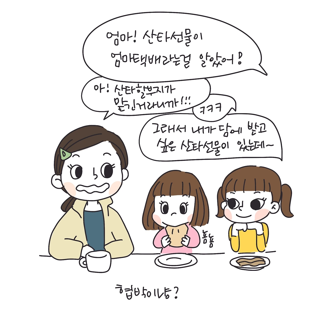 코로나로 힘드신 분들이 많죠. 저희 애들 어린이집 학부모님도 코로나에 걸려 비상이 걸렸답니다. 맞벌이하시는 분들은 얼마나 애가 타고 힘들까요. 크리스마스의 기적 같은 일이 쉽게 생길 순 없지만, 저마다 즐겁고 행복한 일이 하나쯤은 생기시길 바랄게요.
