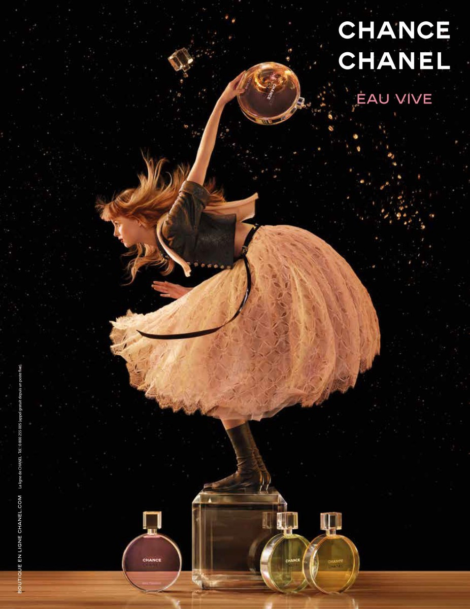 샤넬 샹스 라인에는 총 4가지 향수가 있는데, 광고 속에서도 4명의 샹스 걸들이 나타난다. 각각 샤넬 샹스에 있는 Chance, Eau fraiche, Eau tendre, Eau vive를 의미한다. Chance는 황금빛 향수로 낙관과 긍정의 무드를, 초록빛 Eau fraiche는 신선하고 생동감 넘치는 무드, 핑크빛과 라일락색을 넘나드는 Eau tendre는 부드러움과 섬세한 무드를, 오렌지색의 Eau vive는 에너지 넘치는 활기찬 무드를 상징한다. 그 중 이 광고는 샤넬 샹스 오 비브(Eau vive) 광고였기에, 오렌지빛 샹스의 활기차고 에너지가 넘치는 느낌이 든다.