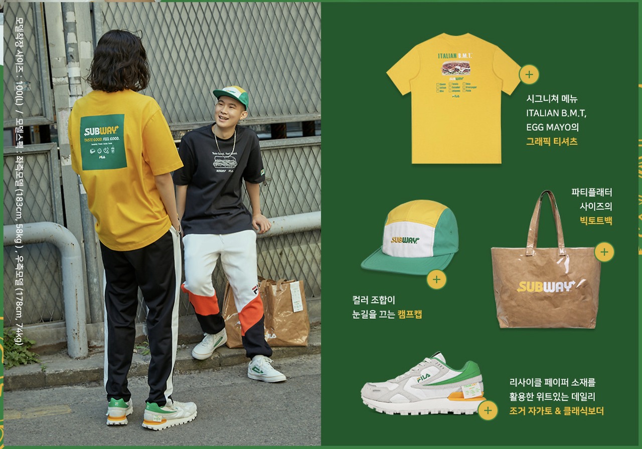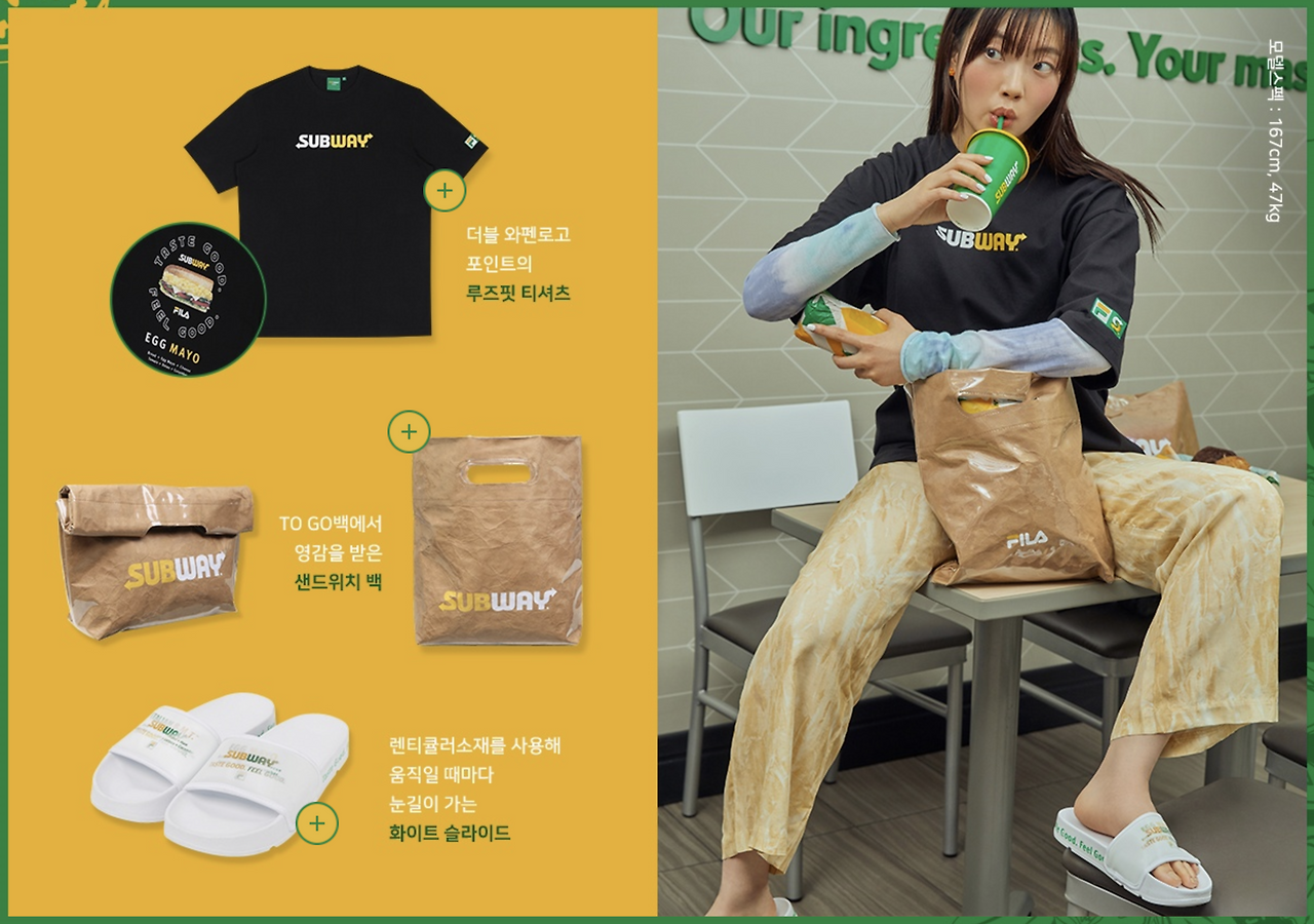 서브웨이는 그간 휠라가 보여줬던 식품 브랜드와의 콜라보의 확장판이라고 볼 수 있다.