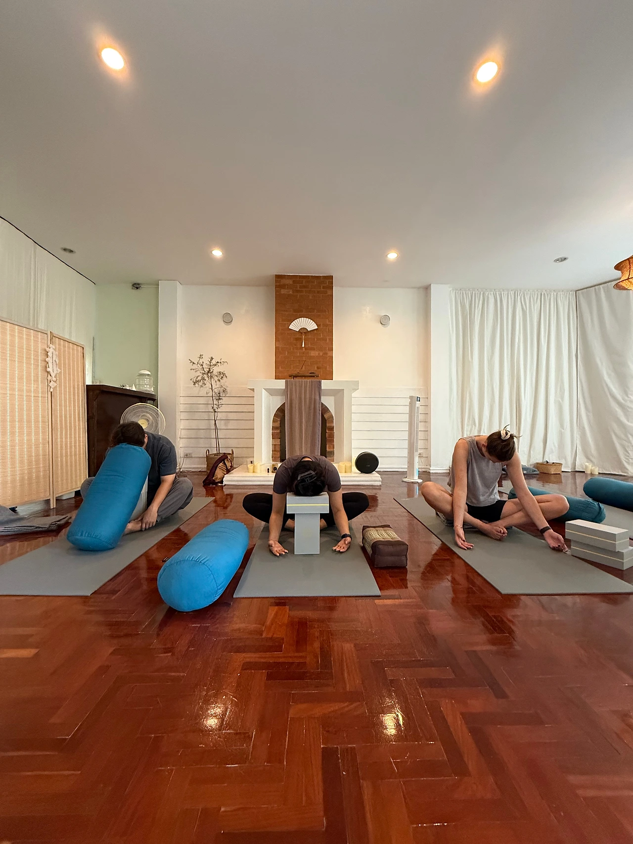 우연히 알게 된 요가원이다. 치앙마이에는 올드타운과 님만처럼 잘 알려진 지역이 있지만, 이곳은 그 사이에 위치한 산티탐(Santitham)이라는 동네에 있다. 처음 이곳의 수업을 듣고 싶었던 이유는 인요가와 사운드 힐링 프로그램이 많아서였다.