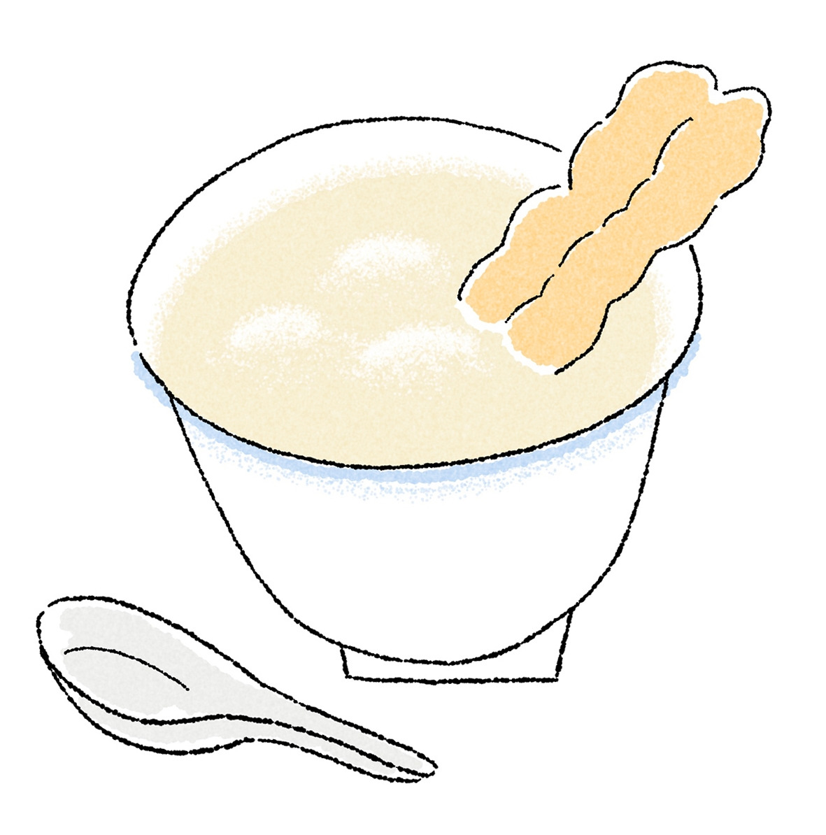 가장 클래식한 조합은 달콤한 또우장과 요우띠아오. 바삭하게 튀겨낸 가벼운 밀가루 빵인 요우띠아오는 얼핏 꽈베기처럼 생겼지만 단맛이 없어 또우장과 더욱 잘 어울린다. 맛도 모양도 단순해 보이지만, 요우띠아오의 맛으로 또우장 가게의 실력을 이야기할 정도로 아침 식사에서 중요한 역할을 한다. 그릇 가득 담겨 나온 또우장에 길쭉한 요우띠아오를 과감하게 푹-적셔 먹어보자. 폭신한 빵이 또우장을 머금어 입 속으로 부드럽게 넘어간다.