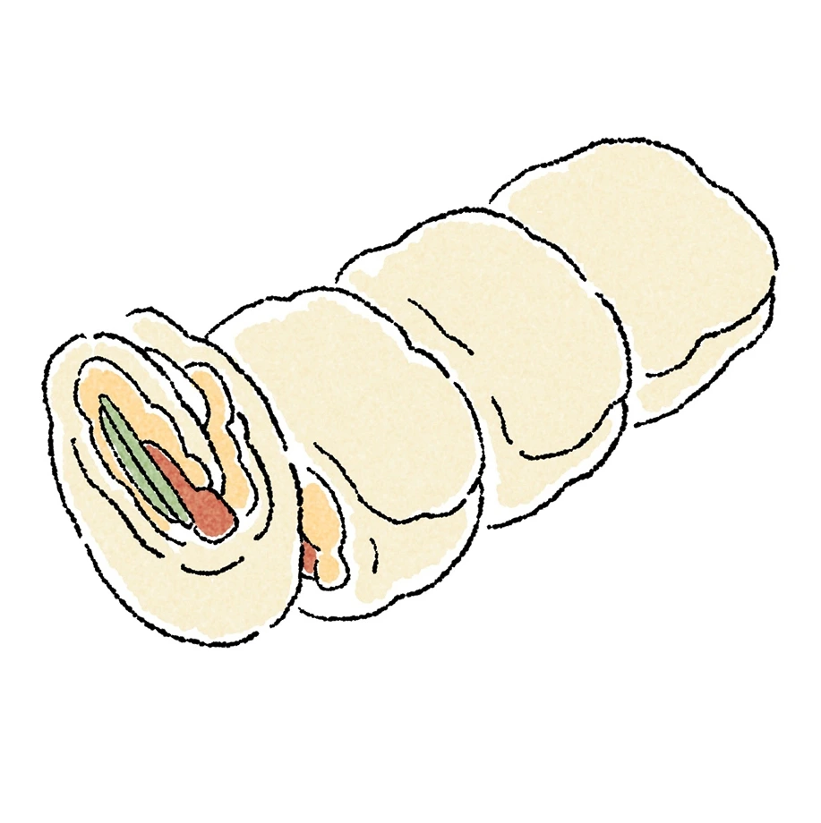 쫄깃한 밀가루 전병에 달걀을 넣고 말아 낸 딴삥 또한 놓칠 수 없는 메뉴. 달걀을 기본으로 다양한 재료를 조합하기 때문에 주문서엔 다양한 딴삥 메뉴가 쓰여 있다. 또우장 식당은 대부분 현지인을 상대로 장사를 하기에, 사진이나 영어 메뉴가 없는 곳이 많다. 주문서 상단에 있는 딴삥을 주문하면, 보통 치즈나 햄 같은 무난한 재료를 곁들인 딴삥을 맛볼 수 있다. 가끔 도전 정신을 발휘해 주문서 하단에 쓰인 딴삥을 주문해 보는 것도 재미! 물론 그 재료의 정체를 영원히 알 수 없을 때도 있지만 말이다.