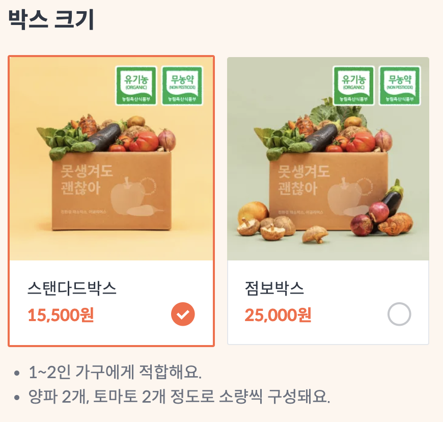 다른 마켓에서 어글리어스 채소박스를 사면 어떨까?