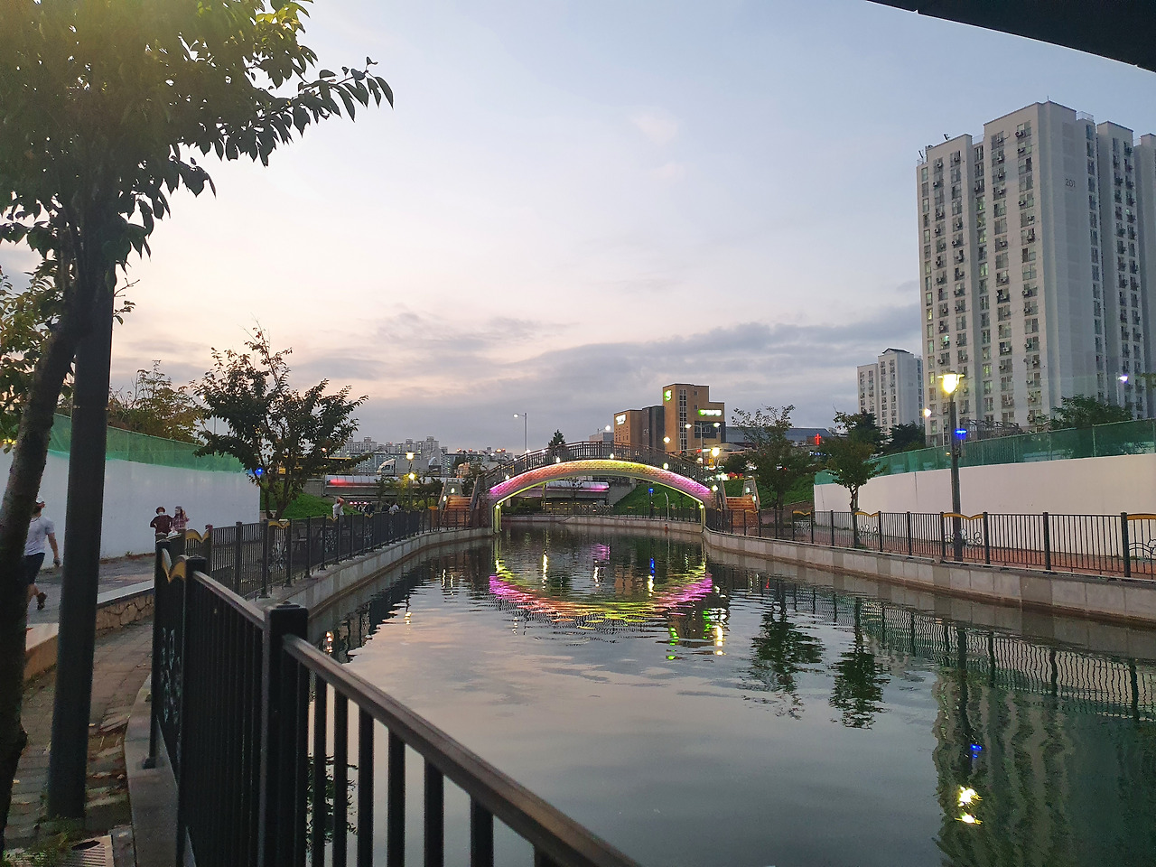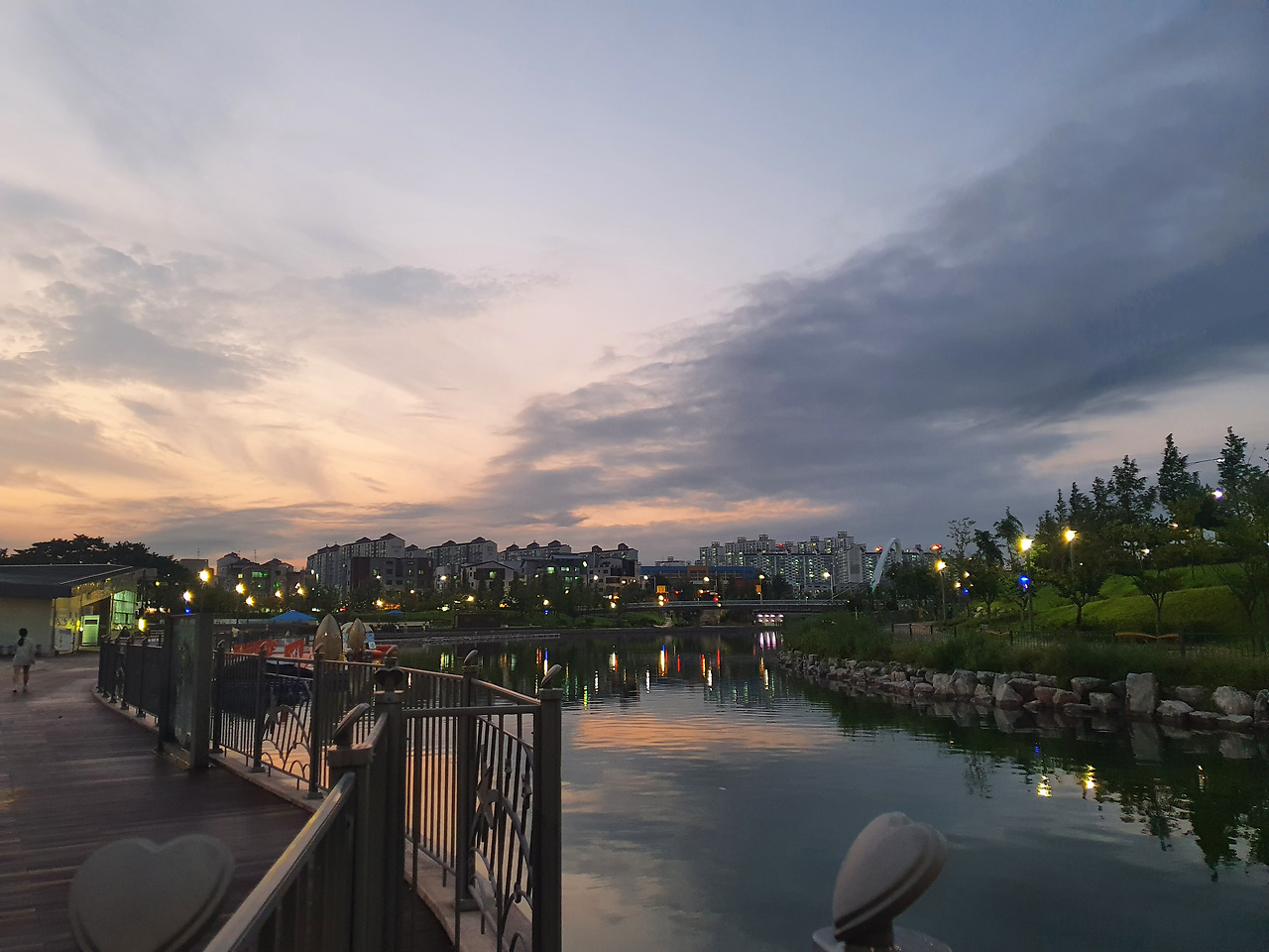 해는 우리의 바쁜 일정을 함께 소화하기 힘든 듯 벌써 초승달에게 바통을 넘겨주고, 우리는 마지막 장소인 장기동의 한강 중앙공원을 향해 길을 나섰다. 김포의 베니스이자 상징적인 랜드마크가 있는 곳을 뽑자면 1순위로 먼저 뽑을 수 있는 장소라 해야 할까? 한강 중앙공원에 도착하면 문보트가 흐르는 호수를 따라가다 보면 운하를 따라 상점가가 늘어서 있어 마카오의 베니시안 호텔이나 싱가포르의 마리나 베이 샌즈의 느낌도 얼핏 나서 이국적인 분위기를 자아낸다.