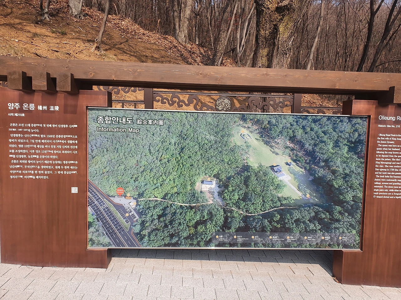 유원지의 붐볐던 흔적은 이제 온데간데없고, 쌀쌀한 겨울바람만 거리 사이로 메몰 차게 분다. 이제 일영유원지는 뒤로 하고, 장흥을 향해 발걸음을 서두른다. 어느새 통일로에서 갈라지는 39번 국도와 합류하고 산자락을 따라 고개가 나온다. 이 고개를 넘기 직전 ‘온릉’이란 표지판이 좌측에 조그맣게 자리하고 있어서 눈여겨보지 않으면 지나치기 쉽다. 게다가 중앙분리대가 도로 중앙에 뻗어있어, 꽤 먼 거리를 지나 다시 유턴해서 온릉으로 들어가야만 한다.