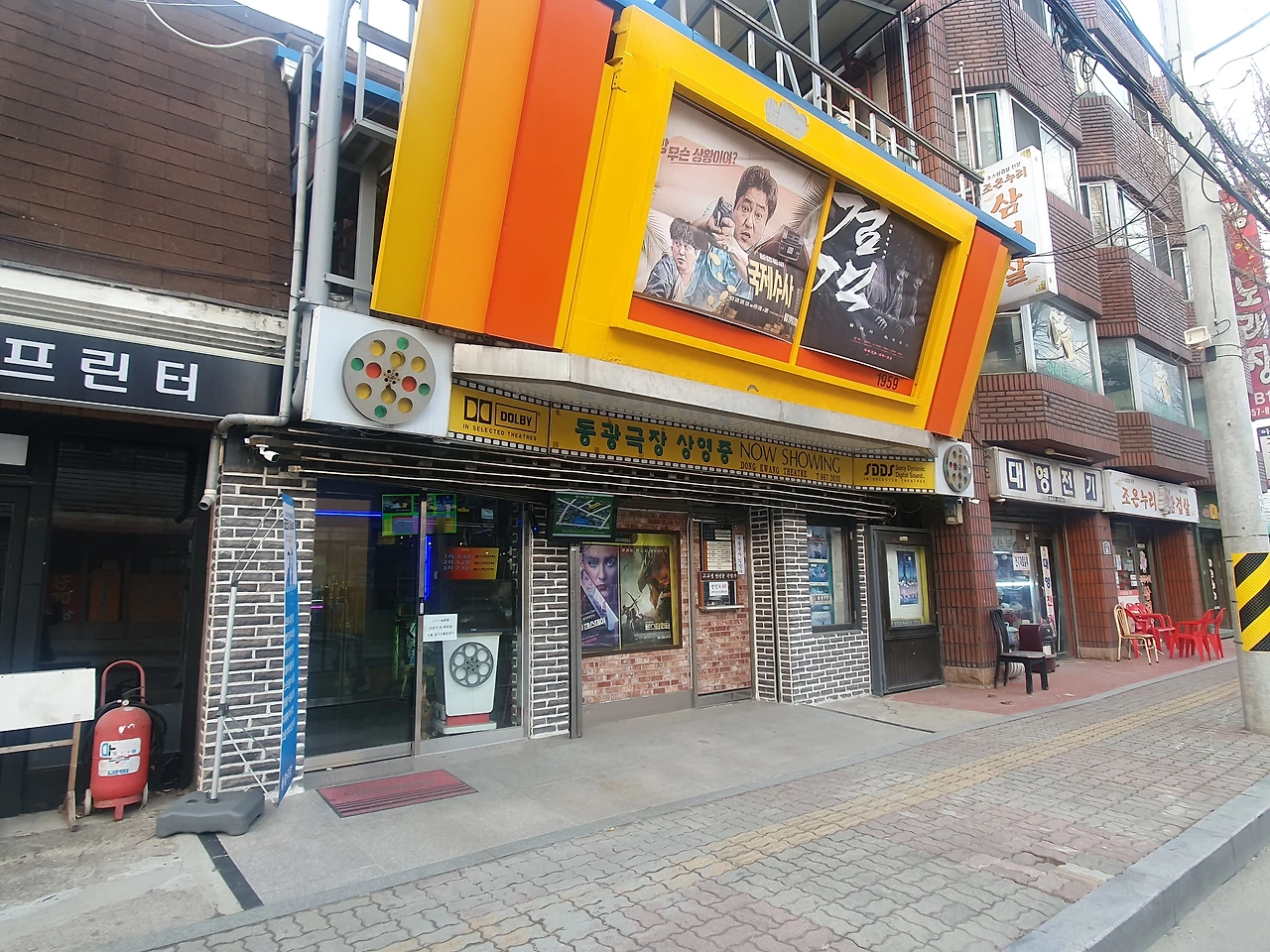 갑자기 어렸을 때 본 것 같은 오래된 극장이 나를 맞아준다. 지금은 멀티플렉스에 밀려 어느덧 찾기 힘든 단관극장이지만 동두천에는 동광극장이 1959년 문을 연 이래 아직까지 명맥을 유지하고 있었다. 예전 대기업의 극장보다는 종로의 단성사나 피카디리까지 굳이 가서 영화를 보곤 했었다.(비록 단성사와 피카디리도 멀티플렉스로 바뀌었지만) 단성사는 지금은 평범한 귀금속 상가로 바뀌었고, 피카디리는 대기업에 인수되면서 어디에서나 볼 수 있는 평범한 영화관으로 변모해 항상 아쉬움이 많은 나였다. 동광극장의 외관은 옛 모습 그대로 걸린 노란색 영화 간판이 세월의 흔적을 그대로 담고 있었다.