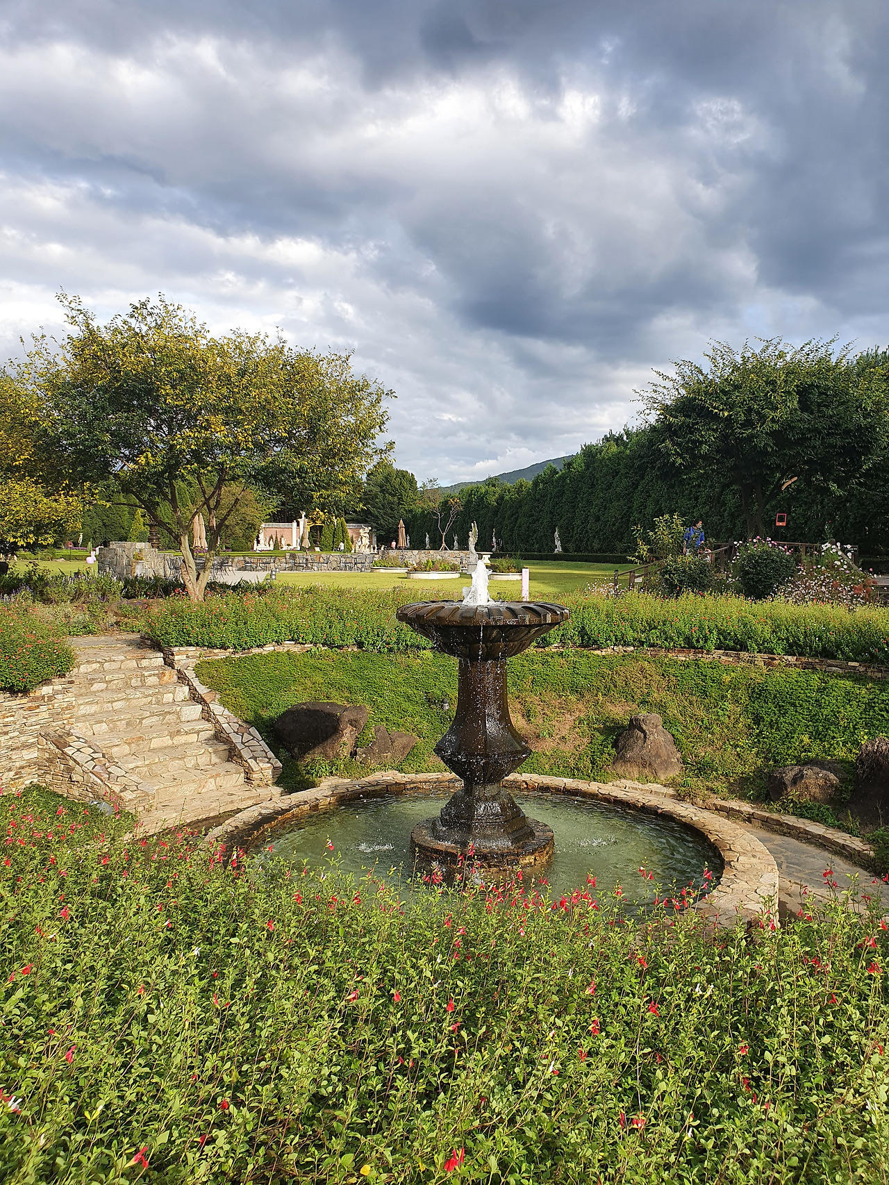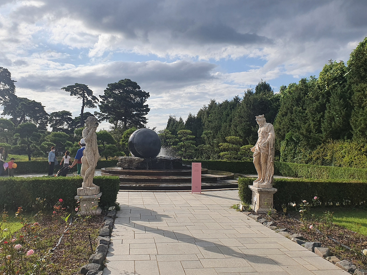 각설하고 촬영팀을 피해서 벽초지의 수목원의 2대 하이라이트 하나라고 볼 수 있는, 유럽풍 정원의 신화의 공간으로 들어갔다. 마치 프랑스의 베르사유궁에 온 것 같은 공간인데, 입구의 웅장한 황금빛의 말리성의 문에서부터 그런 기대감은 커져만 갔었고, 안으로 들어가자마자 곳곳에 서있는 대리석의 그리스 신상들과 곳곳에 있는 분수들과 잘 가꾸어진 나무들이 어우러져 순간 여기가 유럽인지 한국인지 모를 정도였다.
