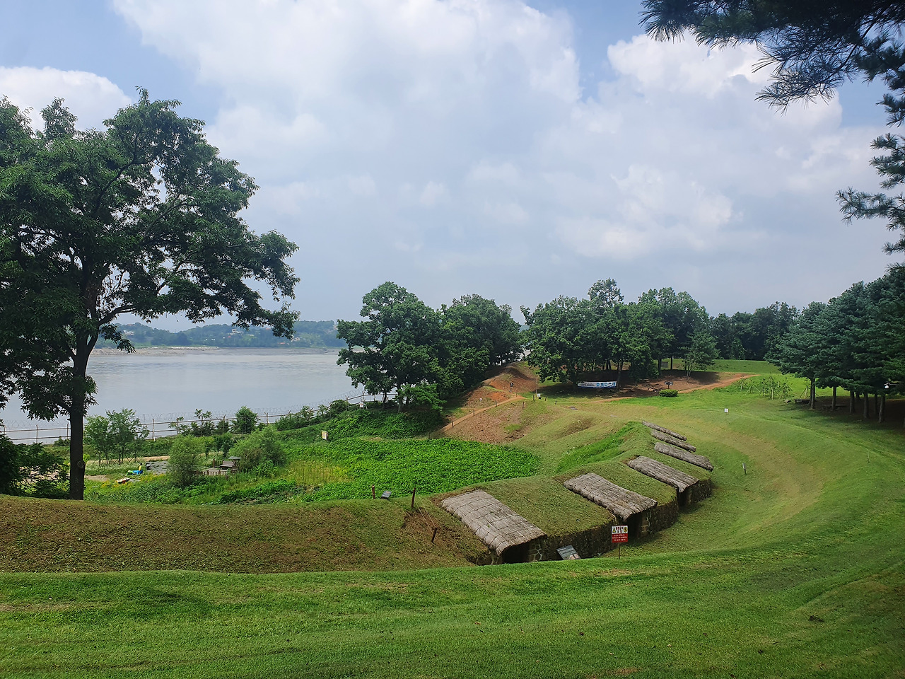 언덕에 오르니 싱그러운 풀의 향기가 밀려오고, 사방에는 수많은 여치와 메뚜기들이 뛰어놀면서 나를 반겨준다. 어느덧 흙으로 덮여서 잘 보이지 않았던 포대의 위용이 한눈에 드러난다.
