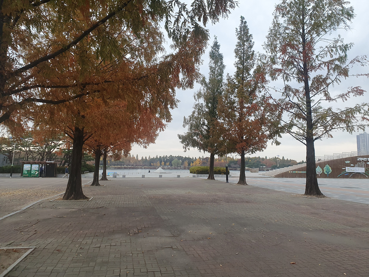 보통 시내를 걷다보면 도로 중앙에는 차가 그 자리를 지배하고 있고, 우리가 걷는 좁은 인도에서는 수시로 자전거와 킥보드, 심지어 오토바이까지 비집고 들어와 늘 긴장을 유지하면서 다녀야 한다. 한순간이라도 멍을 때리거나 다른 생각을 하다보면 간발의 차이로 나의 어깨를 스쳐 지나갈지도 모른다. 하지만 호수공원에서의 주인은 우리 인간이다. 간만에 물가를 한없이 멍하게 바라보며 술술 불어오는 바람도 느껴보고 하늘도 처다보고 아름다운 경치를 마음껏 감상한다. 확실이 연륜이 오래된 공원이라 그런지 다른 호수공원보다 고목들이 많고, 숲이 훨씬 우거져 아름다움이 훨씬 깊어진 느낌이다.