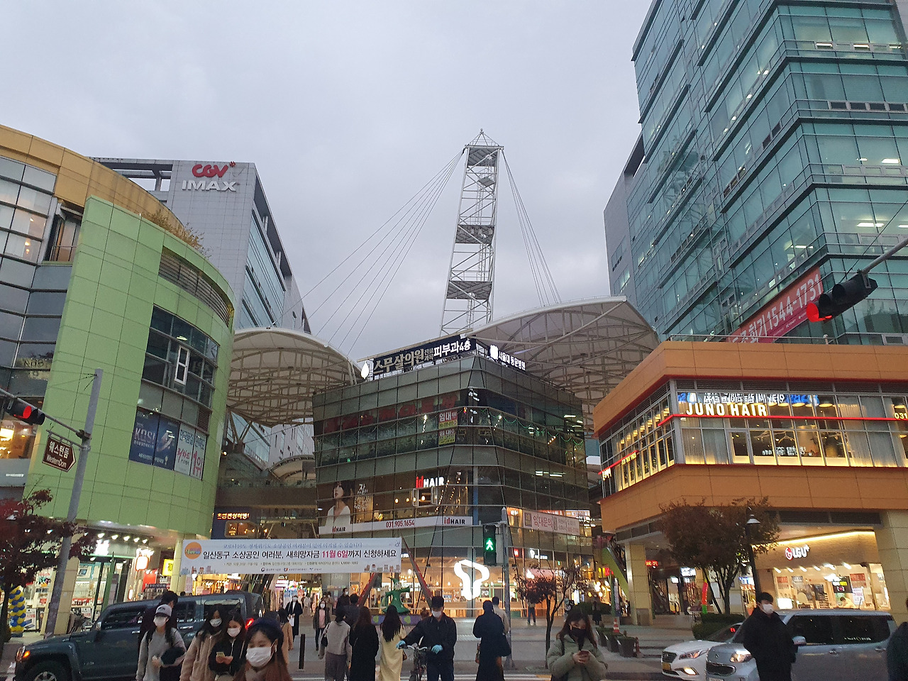 확실히 번화가엔 사람들로 북적거려야 제 맛이 사는 것 같다. 서로 왁자지껄 떠들며 저 마다 이야기를 새로 만들어 나가면서 도시를 더욱 풍성하게 만들고, 베드타운에 불과했던 일산신도시가 독자적인 새로운 문화를 창조하는데 큰 역할을 할지도 모른다. 보행자거리를 지나면 드디어 혹자는 일본의 번화가 아케이드 거리가 아닌가 생각할 정도로 유사한 웨스턴 돔의 아케이드가 길게 뻗어있다.