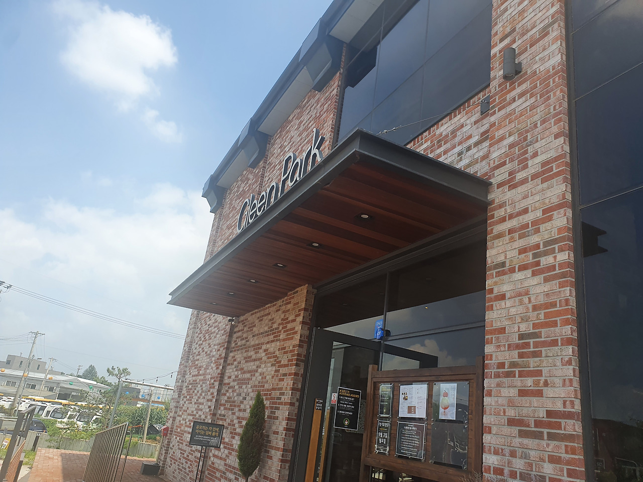 이번에 갔던 카페 글린 공원이 바로 확신을 들게 만들어 주는 장소다. 김포의 유명 카페들과 마찬가지로 도시와 도시 사이의 빈 공간에 자리를 잡았다. 장기동과 구래동 사이인 양촌읍 석모리 사이에 위치하며, 도로에서 좁은 길을 조금 올라가야 나타나기에 네비게이션을 잘 보지 않으면 지나쳐서 갈 수도 있다. 전혀 카페가 없을 공간인데 올라가다 보면 널찍한 규모의 카페가 나타난다. 건물은 벽돌로 만들어졌지만 별다른 특색을 느끼지 못했고, 비교적 좁은 부지에 많은 차량을 주차하려고 기다랗게 만들어진 주차장이랑 구석에 있는 베이커리 건물 말고는 눈에 띌만한 무언가가 없어서 그다지 기대감이 없는 상태로 들어갔었다.