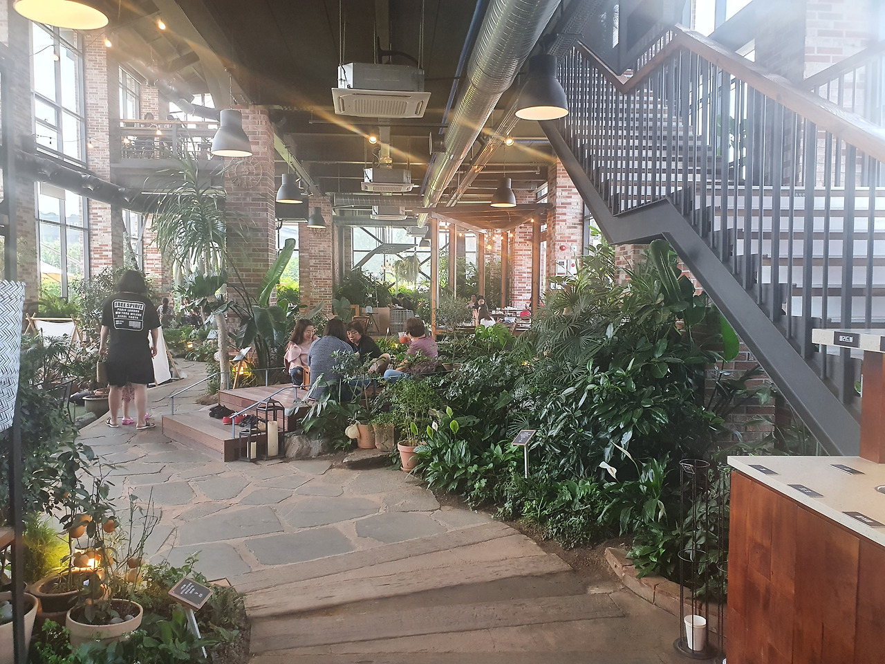 1층은 역시나 사람들로 붐벼서 2층도 구경할 겸 올라가 보기로 했다. 2층은 가운데를 뻥 뜷어놓고 1층을 밑에서 내려다보면서 감상하게 되어 있으며, 다양한 형태의 좌석에 앉아 음료를 마시며 식물과 함께 싱그러운 분위기를 즐길 수 있어서 무척 좋았다. 베이커리는 무난했지만 솔직히 음료는 약간 실망을 했었다. 보통 맛있는 커피집을 가면 입구에서부터 커피 볶는 냄새가 진하게 풍겨져 오고 로스터링 과정도 심상치 않게 볼 수 있는데, 여기는 그런 과정이 전혀 없어서 조금 불안 불안했는데 역시나였다.