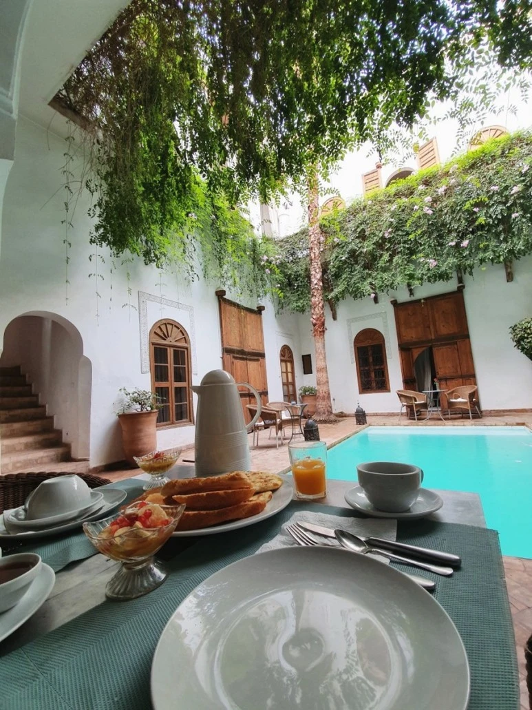 새로운 아침이다. 그리고 오늘은 친구의 생일이다. 마침 아침 식사 테이블에 장미꽃이 놓여있다. 내가 준비한 듯 장미꽃을 내밀며 해피 벌쓰 데이 내 친구. 혹시나 낯선 여행지에서 생일 축하를 제대로 못하고 넘어갈까 봐 여행 전 바르셀로나에서 깜짝 생일파티를 해주고 왔다. 그래서 맘이 한결 편안한(?) 생일 아침이다. 마라케시에서 마지막 날 특별한 생일 행복하게 보내자.