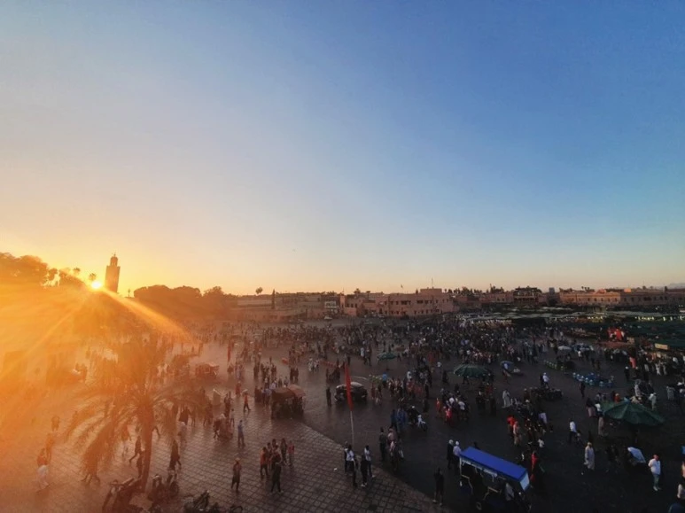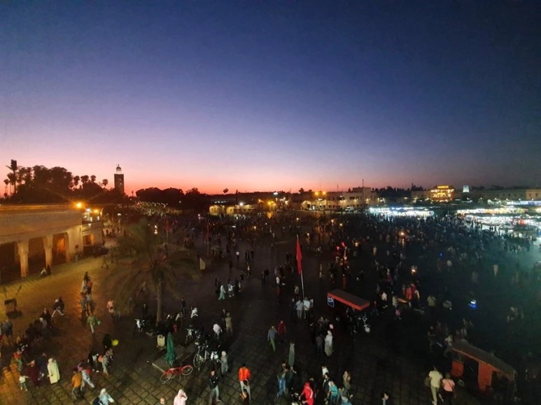 1시간 정도 만에 일어난 이 모든 일. 하.... 정신 차리자. 마라케시는 끝까지 우리에게 녹록지 못했다. 광장으로 다시 나오니 이제야 좀 안심이 된다. 그새 점점 해가 뉘였 뉘였 저 간다. 노을과 광장 뷰를 잘 볼 수 있을 만한 루프탑 바를 찾아 올라갔다. 맥주를 한 모금하면서 방금 당한 일을 웃어 넘기기로 한다. 그래 마라케시에 돌아왔구나. 마라케시의 마지막 밤. 매일매일 빠지지 않고 우리에게 멋진 노을을 선물해 준 모로코. 조금 전 해프닝은 털어 버리고 지는 해를 바라보았다. 많은 것들이 머릿속에 스쳐 지나간다. 다시 감사한 마음만 가득했던 순간이다. 무엇보다 무사해서 감사하다. 그리고 이 사건은 두고두고 이야기할 우리의 안주거리가 되어 줄 거다.