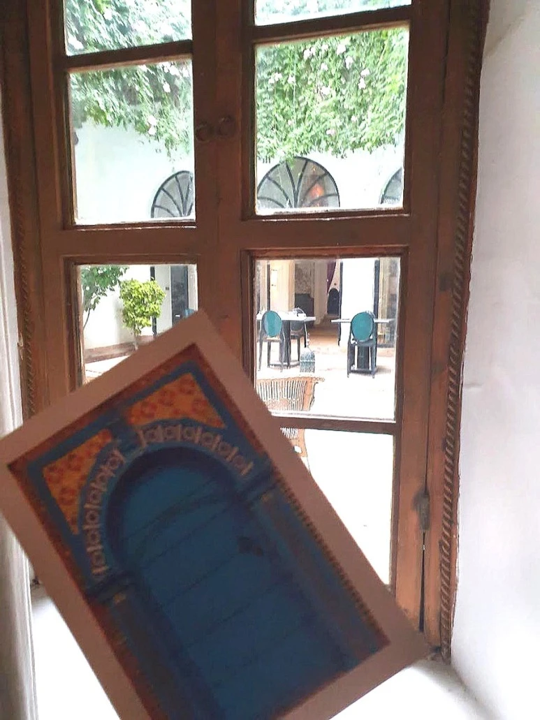 12시가 다 되어 숙소에 돌아왔다. 드디어 마라케시의 밤을 즐기고 왔다는 이 뿌듯함. 낮에 쇼핑을 하면서 엽서를 한 장 샀었다. 사실 친구의 생일 카드 겸 우리 여행의 감사함을 글을 써 전하고 싶었다. 친구에게는 남자 친구랑 통화를 좀 하고 오겠다며 착한 거짓말을 하고서 잠시 혼자만의 시간을 가졌다. 우리 룸에서 멀찍이 떨어진 리야드 모퉁이 테이블에 앉아 자리를 잡았다. 조명이 어두워 핸드폰 조명에 의지한 채 조용히 글을 적어나갔다. 그리고 몰래 친구가 가지고 온 책에 꽂아 두고 잤다. 므흣.