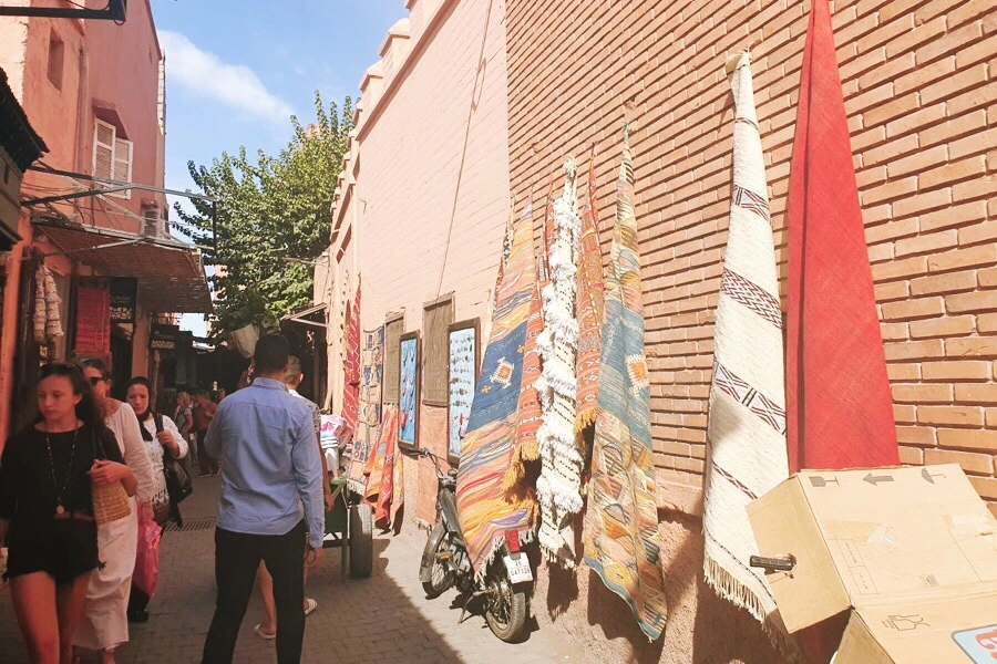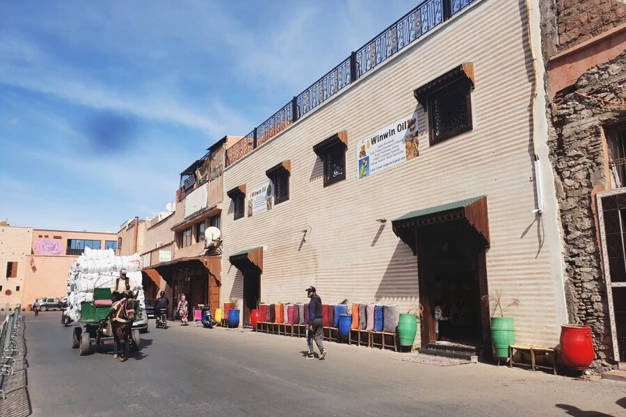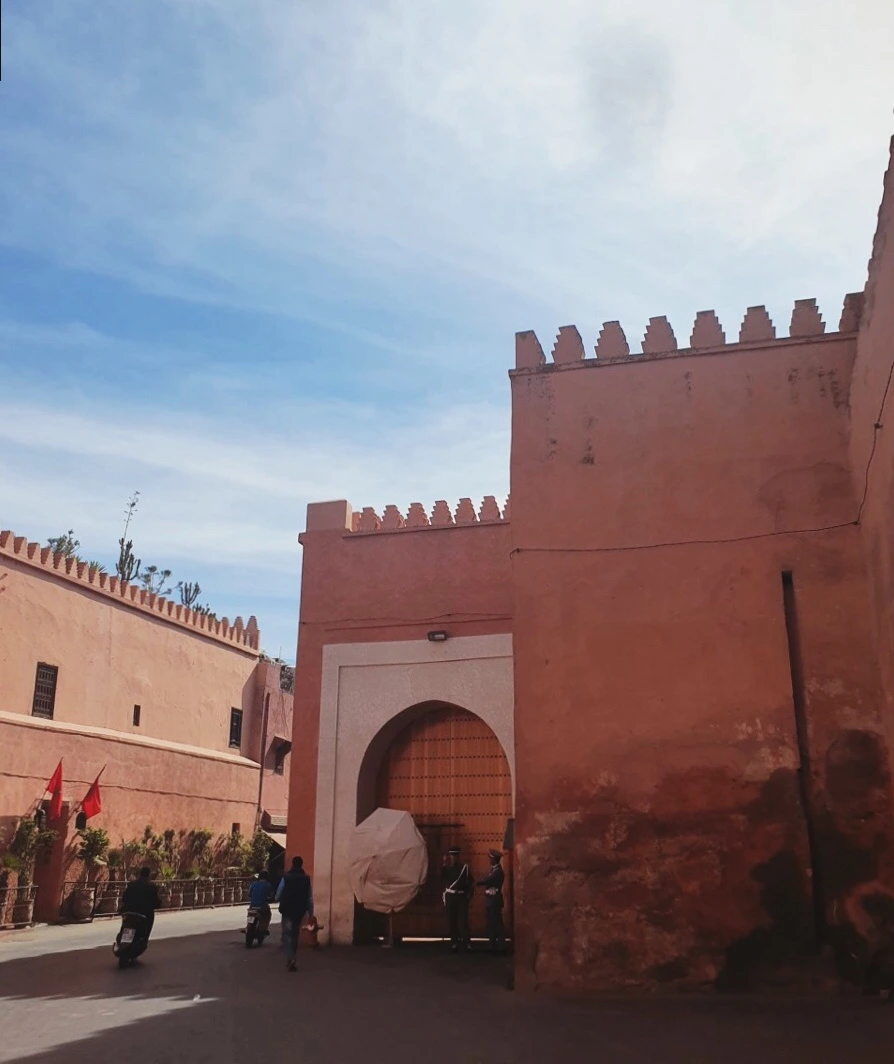 궁전 근처를 방황하며 아쉬운 마음에 사진을 열심히 남겼다. 성벽이 참 높기도 하여라. 마라케시의 역사 관람은 제대로 못 하게 되었지만, 이 도시에서 우리가 무언가를 하고 있다는 것만으로도 충분히 가치가 있다. 걸어 다니는 것, 보는 것, 먹는 것 이 모든 것들이 자체로 여행이다. 계획이 틀어지는 것 또한 여행이다. 궁전을 둘러보며 관광객들과 함께 있었을 역사 배움의 시간을 대신해 우리는 로컬들과 함께하는 현실 경험의 시간으로 채워 보았다. 거리의 사람들 모습을 구경하며 이젠 모로코 사람들과도 곧잘 말을 섞었다. 쫄탱이 모드 해제. 슬슬 배가 고파져 식당을 찾으러 갔다. 상가들이 모여 있는 골목이 보여 발길을 그쪽으로 향해 보았다.
