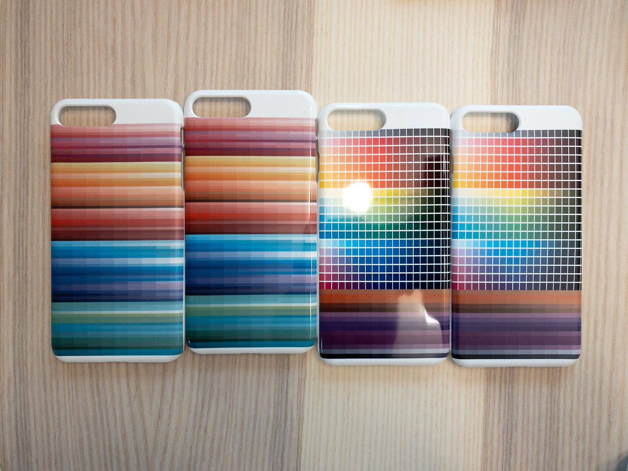 이럴 때 컬러 팔레트를 제작한다면, 하나의 케이스에 많게는 100개가 넘는 Yellow 색상을 넣어 인쇄하여 비교할 수 있다. 나는 50만 원 가까이 날려먹은 후에야 이 방법을 터득하여 휴대폰 기종 중 면적이 가장 큰 기종 (ex 아이폰 맥스)으로 색상 컬러칩을 만들어 원본 일러스트 파일과 비교하며 색상 매칭 작업을 진행했다. 유광/무광 재질의 색상은 또 다르기 때문에 두 가지 케이스에 같은 컬러칩을 제작하였고 컬러 팔레트는 추후 다른 디자인을 진행할 때도 참고했다.
