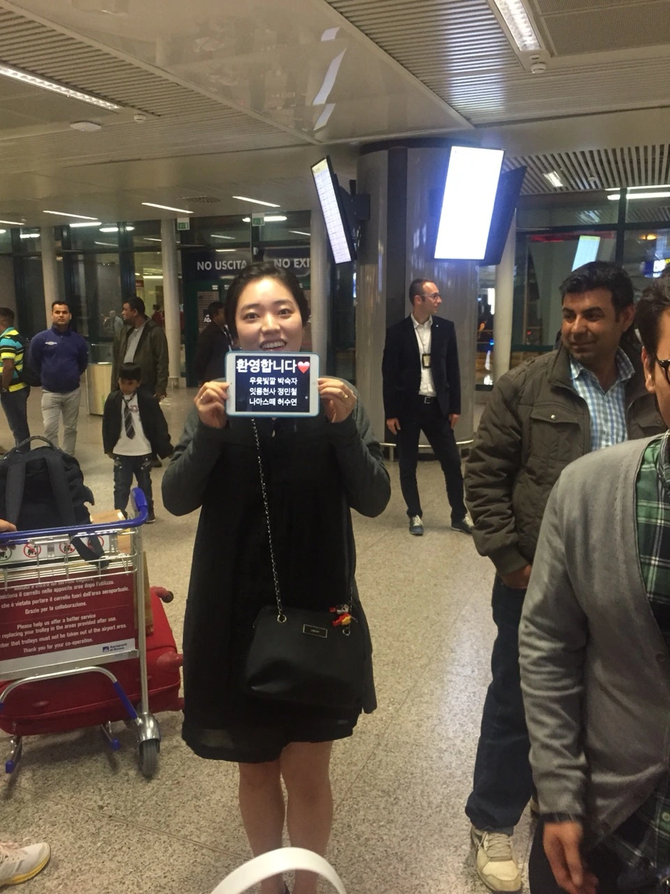 입국심사후에 출국장에 지혁동서와 지영처제의 환영메세지...
