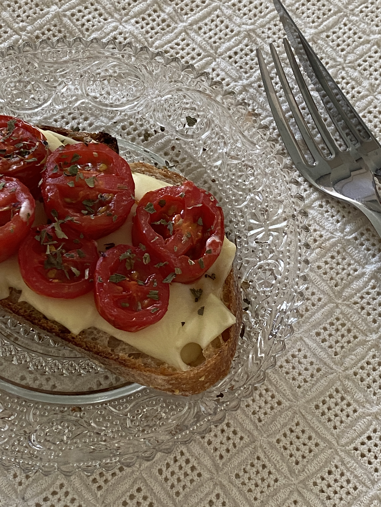오선지 위 음표처럼, 삼박자 고루 갖춘 음식을 접시 위에 올린다. 첫입은 요령이 필요하다. 깜빠뉴의 바삭한 가장자리가 입천장을 위협하기 때문이다. 다시 한입 더 먹으면 쫄깃한 빵이 느껴진다. 빵 사이에 스며드는 토마토는 소스 역할을 한다. 바질페스토와 치즈의 향이 풍기고, 간이 안 된 빵과 토마토에 짠맛이 섞여 풍미를 더 해준다. 공들이지 않고 무언가를 얻어 냈을 때의 얼떨떨함과 무언의 죄책감까지 드는 음식이다. 우리집에 더이상 쭈글쭈글한 토마토는 없다. 접시 위에서 우아한 자태를 뽐내며 장렬히 전사했다.