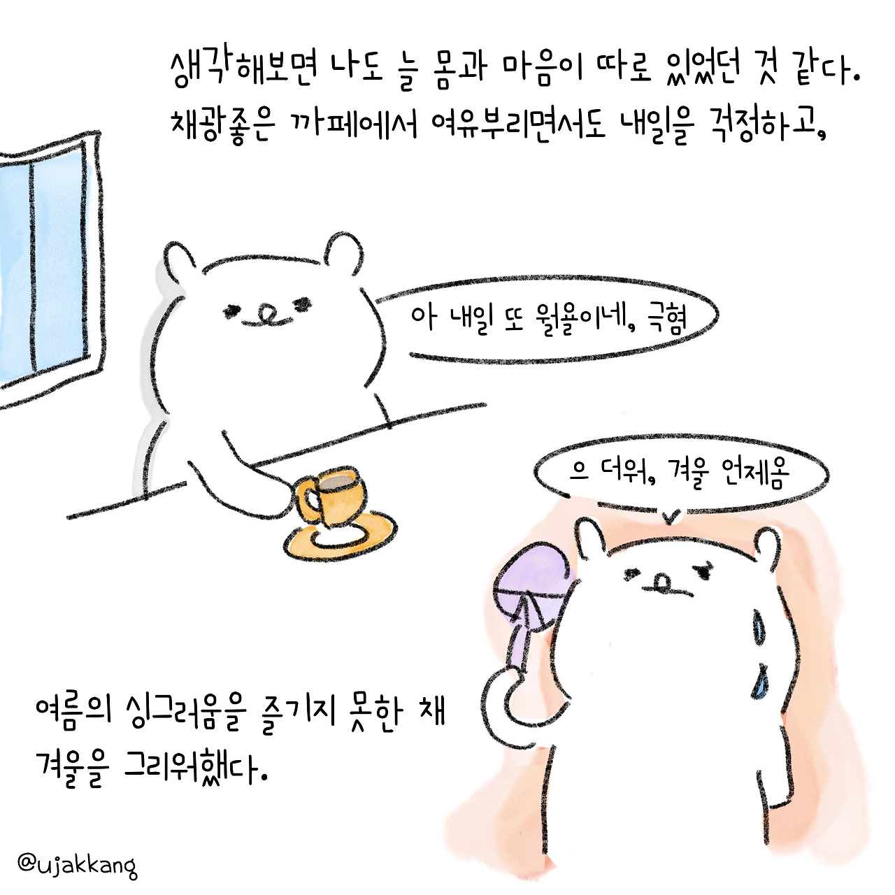 예민하고 내향적이며 소소하게 웃긴, 또 조금은 따뜻한 사람입니다. 기억하고싶은 일상의 단편들을 짧은 글과 그림으로 기록하고 있습니다.