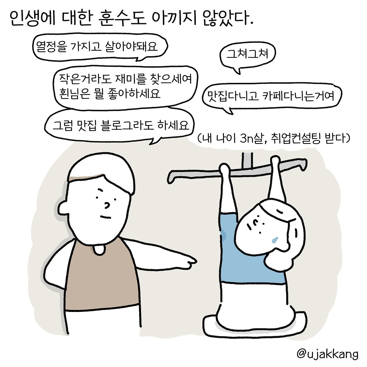 예민하고 내향적이며 소소하게 웃긴, 또 조금은 따뜻한 사람입니다. 기억하고싶은 일상의 단편들을 짧은 글과 그림으로 기록하고 있습니다.