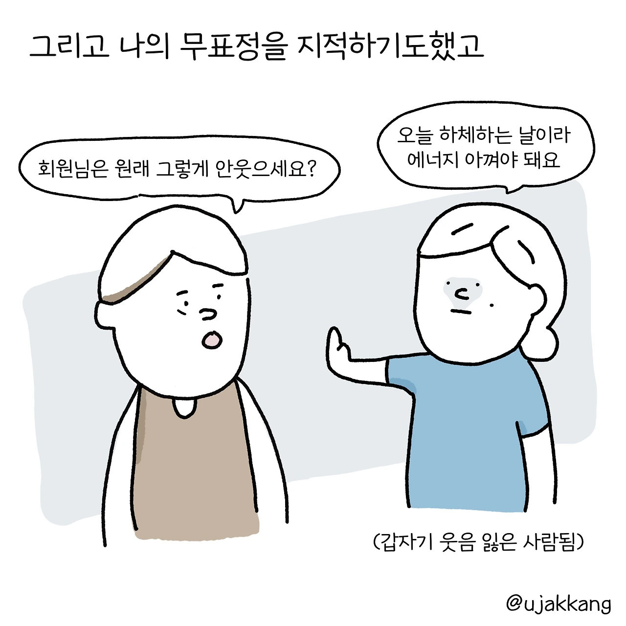 15. 회원님은 왜 안웃으세요?