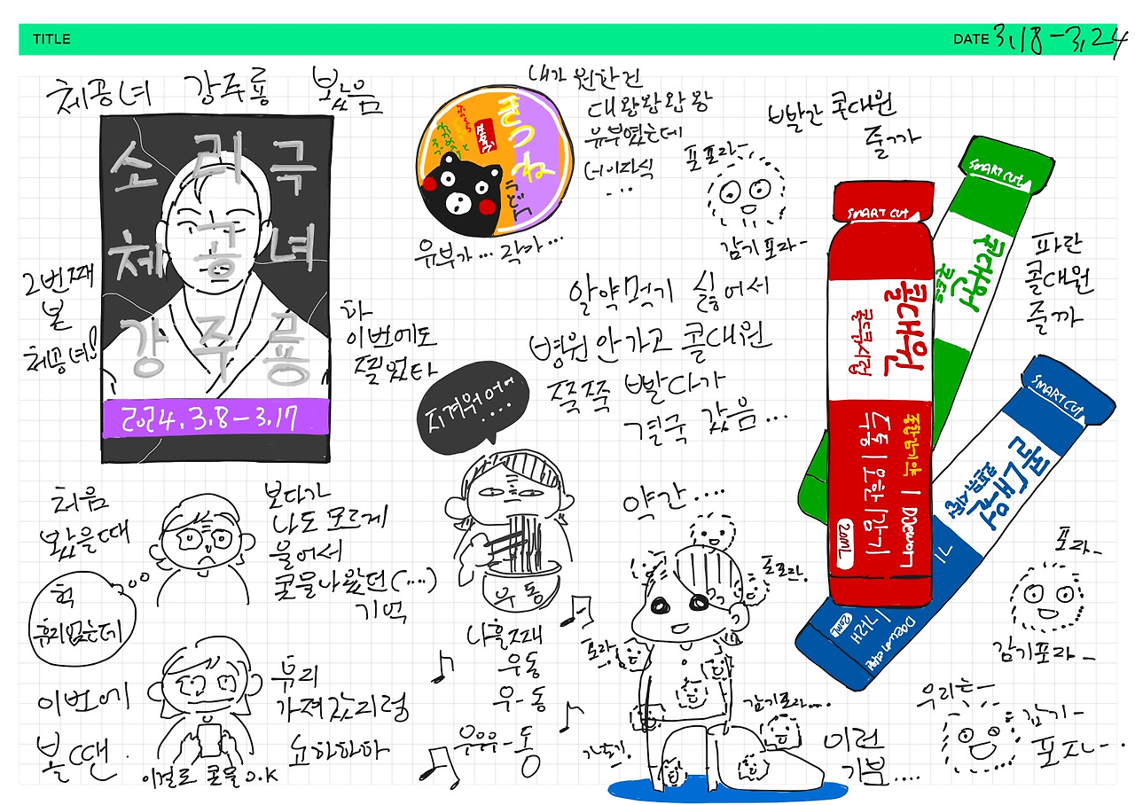 감기로 시작해서 감기로 끝난 한 주였습니다. 월요일에 헬스장에서 운동을 하다가 으슬으슬한 추위를 느꼈지요. 그나마 다행인 건 코로나인가 의심하지 않아도 된다는 거였습니다. 누구한테서 옮았는지 너무 명확했거든요. 거대한 감기 포자 덩어리가 주변을 잠식해 가던 중이었기 때문입니다. 흡사 민들레 홀씨가 퍼져나가듯이 감기가 번져나가는 모습이란. 나는 포자에 감염되지 않았어!라고 의기양양하게 외쳤던 게 무색하게 저도 포자가 되어버린 겁니다. 포포자... 포자포자.. 포포자..... 그래도 혹시 모르니 자가진단 키트로 코를 쑤시긴 했습니다.