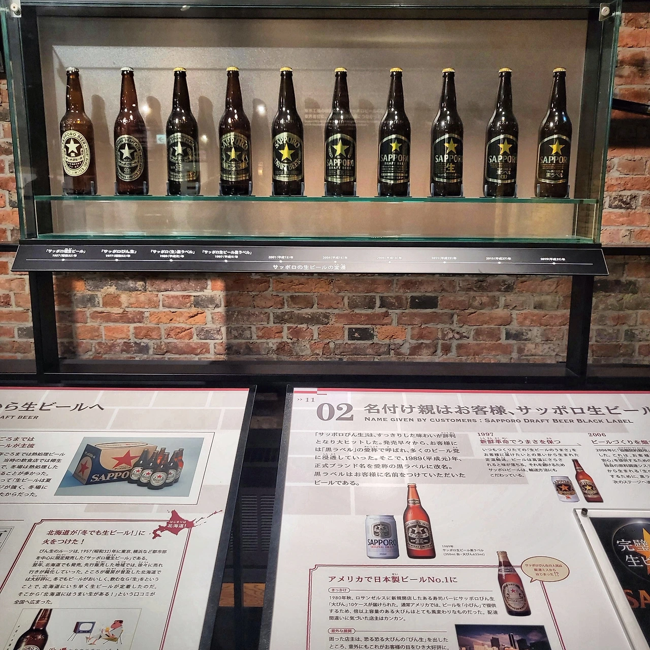 개척의 별은 당당하기만 한 것이었을까요. 누군가에게 개척사의 배에 나부끼던 별은 탄압으로 이어지는 비극의 별이었을 겁니다. 그러나 건물의 벽을 가득 채운 패널에는 그 어떤 비극도 없이, 별도 삿포로 맥주도 자랑스러운 역사로 기록되어 있을 뿐이었습니다.