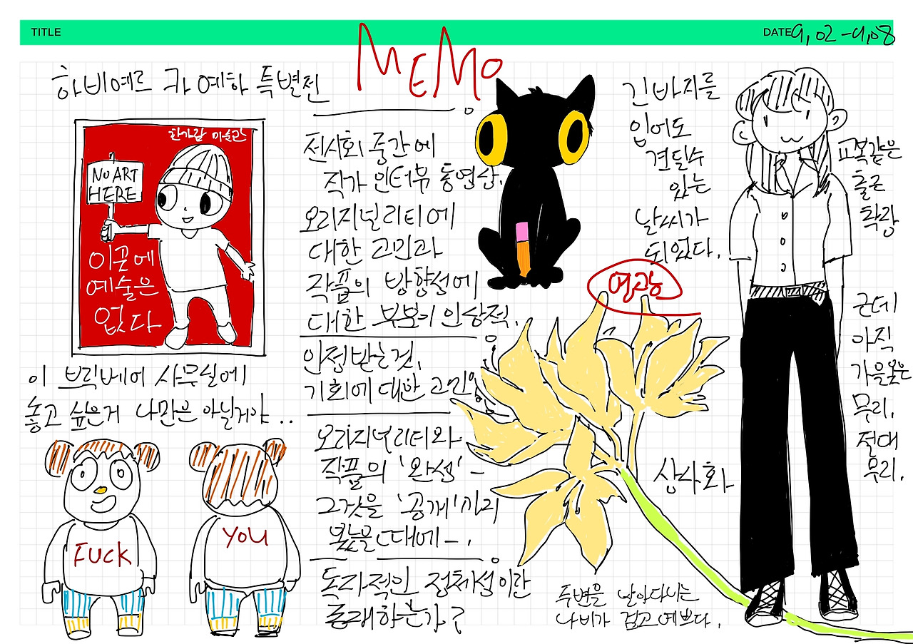 아마 다른 사람은 노랑을 보면 다른 것을 떠올리겠죠. 사람마다 색의 의미는 다를 수밖에 없습니다. 때로는 사회와 미디어가 부여한 색의 이미지를 뛰어넘는 경험을 하는 경우도 있습니다. 누군가에겐 파랑이 여름과 바다의 색이 아닌, 절망과 죽음의 색일 수가 있는 거죠. 그러한 경험의 분리는 사람을 외롭게 만드나 독자적인 존재로도 만듭니다. 그리고 그 외로움을 공유하는 또 다른 타인을 찾아, 그들과 공감할 수 있는 방식으로 이야기를 하게 되는 것. 그것이 예술의 한 형태가 아닐까. 그런 생각을 했습니다. 산모기에 물어뜯기면서.
