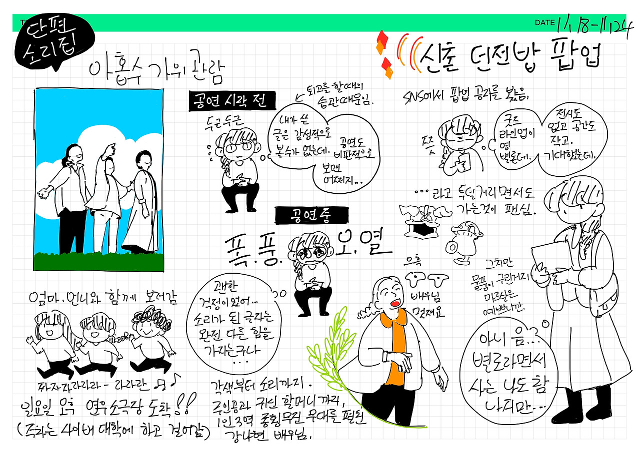 바닥소리에서 공연한 <아홉수가위>를 보고 왔습니다. 소설을 판소리 무대로 각색한 작품입니다. 소설 원작자는 나. 그래서 걱정했습니다. 공연을 순수하게 즐기지 못하면 어떻게 하지, 하고. 공연이 시작하고 얼마 지나지 않아 기우였음을 알았지만 말입니다.