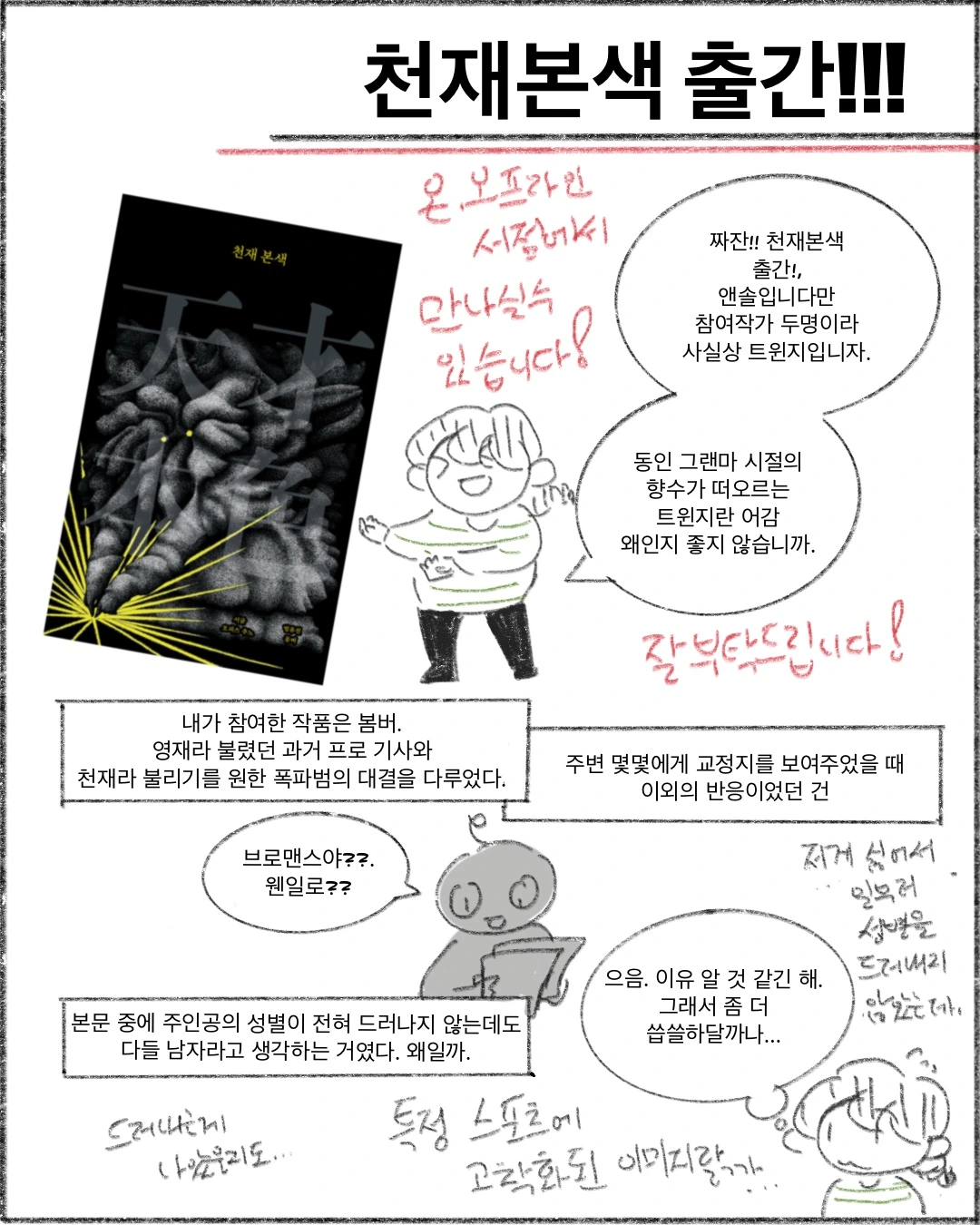 어떤 이야기가 픽 되었는지 궁금하시면 온, 오프라인 서점에서 <천재 본색>을 찾아주세요.