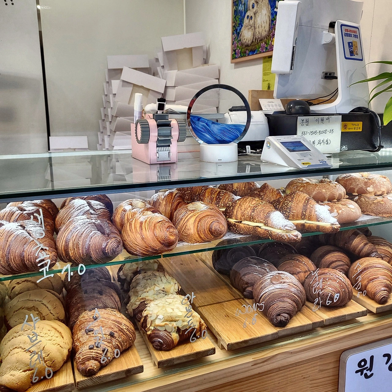 3. 강릉에 가서 한 첫 일정은!!! 빵을 사기 위해 새벽 다섯시에 일어난 거였습니다. 부성당(원강희 제과점)에서는 쫄식빵과 크루와상입니다. 단팥빵이나 다른 페스츄리는 평범해요.