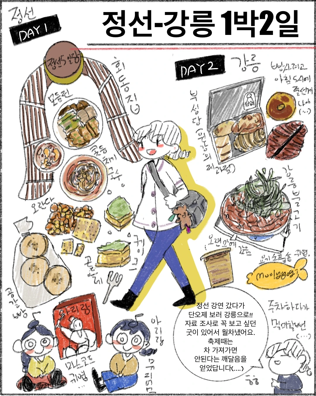 5일장이 열릴 때 갔으면 더 재미있었을 것 같아요. 하지만 5일장이 열리지 않을 때에도 가게들이 제법 영업을 하고 있었습니다. 메밀전과 수수부꾸미 추천. 그리고 아십니까. 정선에는 곤드레 케이크가 있다는 것을!!