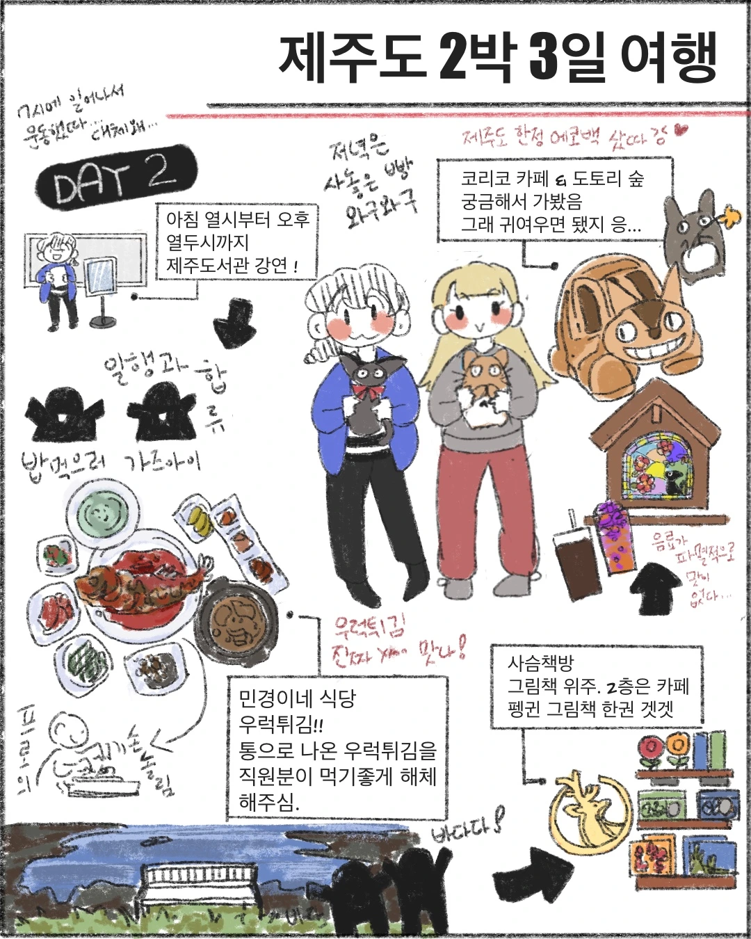 1) 제주도 강연은 [두메별, 꽃과 별의 이름을 가진 아이] 책을 주제로 진행했습니다. 강연을 할 때마다 어떻게 하면 조금이라도 덜 지루하게 이야기를 전할까, 고민하게 됩니다. 참가한 학생분들이 잘 들어주셔서 기뻤답니다. 그리고 강연때마다 학창시절 수업시간에 잤던 걸 참회합니다. 그땐 몰랐죠. 앞에 서면 교실 전체가 그렇게 한눈에 다 들어온다는 걸. 학생이 이렇게 많은데 나 한명 잔다고 티가 나겠어, 이런 가벼운 마음으로 엎어져 잤거든요.