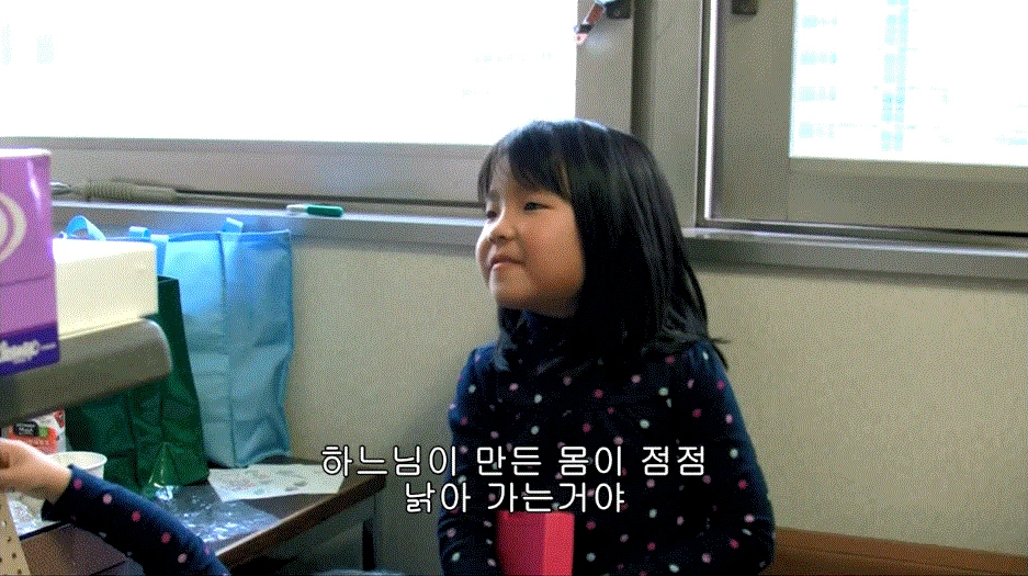 "..왜 그러냐면...한살부터 백살까지 살면 하느님이 만든 몸이 점점 낡아가는거야. 책처럼 점점 낡아져서 죽는거야. 물건도 오래되면 시들어"