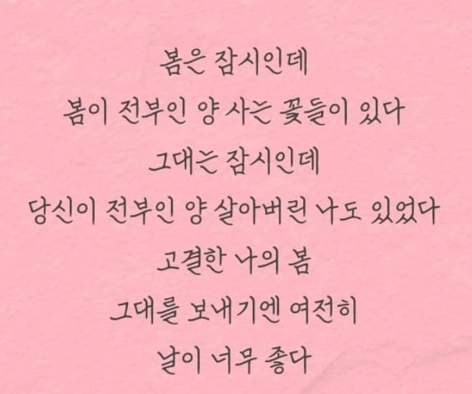 그 아름다운 씨앗이 세상에 뿌려지고 돌고 돌아 세상을 밝히고 당신의 삶에 사랑이 가득하게 하기를 기도한다. 오늘 당신의 말이 가까운 누군가를 살리는 날이 되길 바란다. 내가 받은 그 다정한 따듯한 모습 그대로… 오늘도 내 삶에 당신 있음에 감사하다.