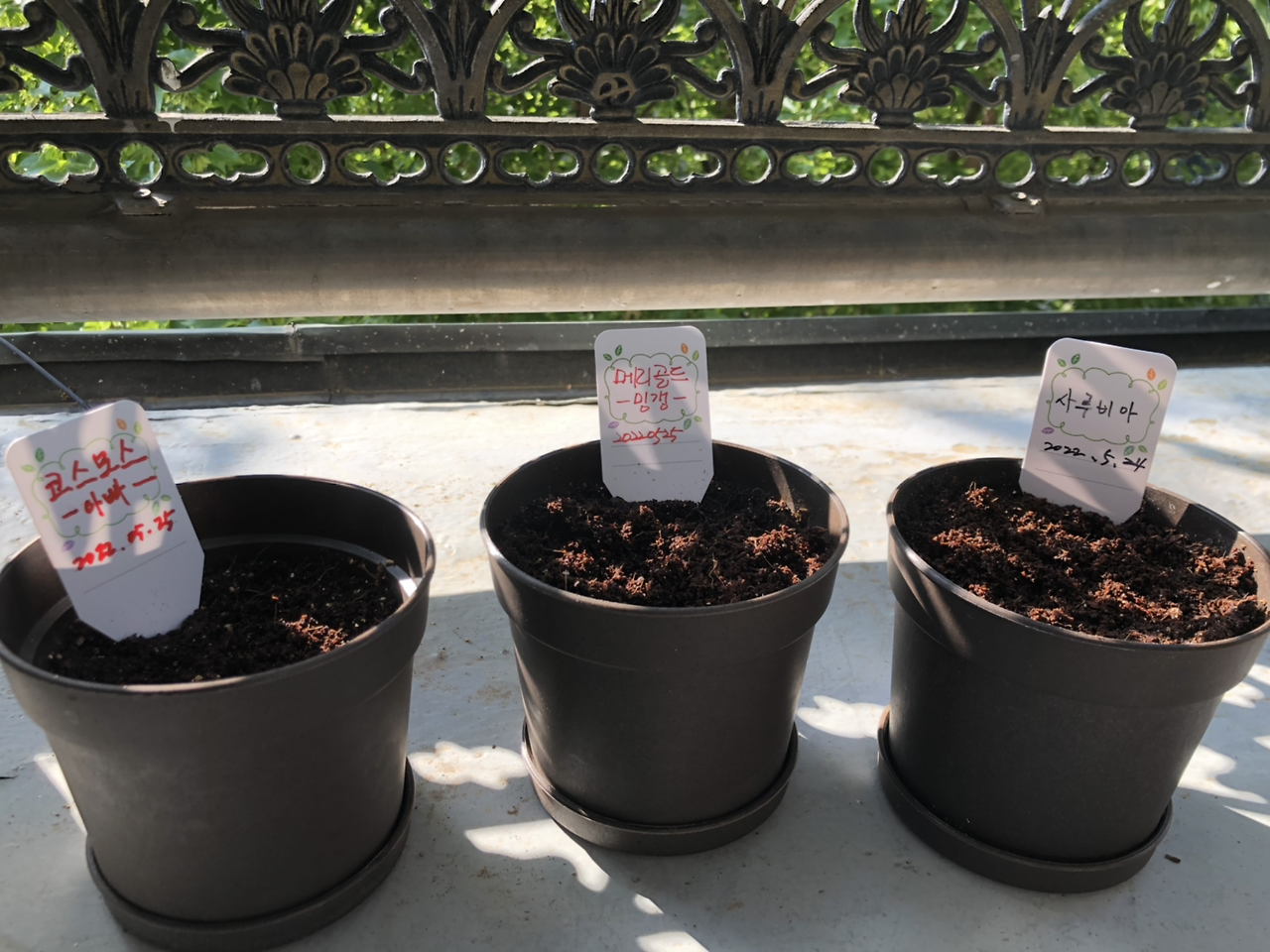 열매나 꽃과 같은 결실을 보기 위해선 종류에 따라 2개월(바질 등), 3개월(꽃 종류), 4개월(방울토마토 등)이 걸린다고 한다. 참! 한 달 뒤에 비료도 줘야 한다.
