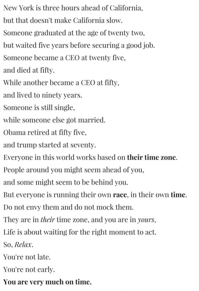 마윈 회장의 조언처럼 시간대에 맞춰 이뤄야 할 목표가 있음에 감사하고, 또 하고 싶은 일이 무엇인지 앎에 더욱더 감사하다. 다른 사람들과는 다른 나만의 '타임 라인'이 있음을 생각하고 조급한 마음을 다잡아 본다.