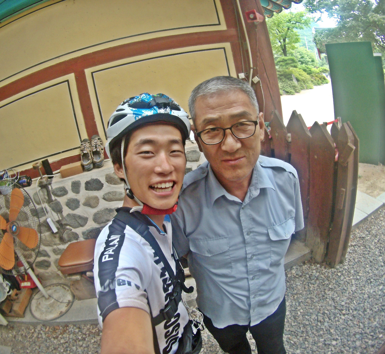 관리실에 도착하자 아저씨는 내가 돌아온 걸 얼마나 반가워하시던지 눈물을 글썽이셨다. 그리고는 무슨 일이 있었기에 이렇게 하루가 지나서 왔냐고 눈물 섞인 어조로 물어보셨다. 관리실에 앉아서 차근차근 상황을 말씀드리니 다음부턴 절대 그러지 말라고, 자신이 얼마나 걱정했는지 아느냐고 몇 번이나 강조해서 말씀하셨다. 아저씨의 말씀을 들어보니 아저씨는 내가 오늘 밤에도 돌아오지 못한다면 경찰에 신고해서 경찰들과 함께 수색작업을 벌일 계획이었다고 하셨다. 이런저런 이야기가 오고 갔고, 돌아와 줘서 고맙다는 이야기를 들었는데 굉장히 죄송스러웠다. 또다시 자전거 여행을 지속해야 했기에, 아저씨와의 가슴 아픈 눈물의 재회를 뒤로하고 인사를 드리고 자전거를 끌고 가려고 인사를 드리고 나왔다. 아저씨는 잠시 기다리라며 관리실로 뛰어가셨다. 그리고 관리실에 있는 과자, 물, 수박 등 모든 음식들을 싸오셔선 굶고 다니지 말라고 하시며 짐받이에 모두 실어주셨다.