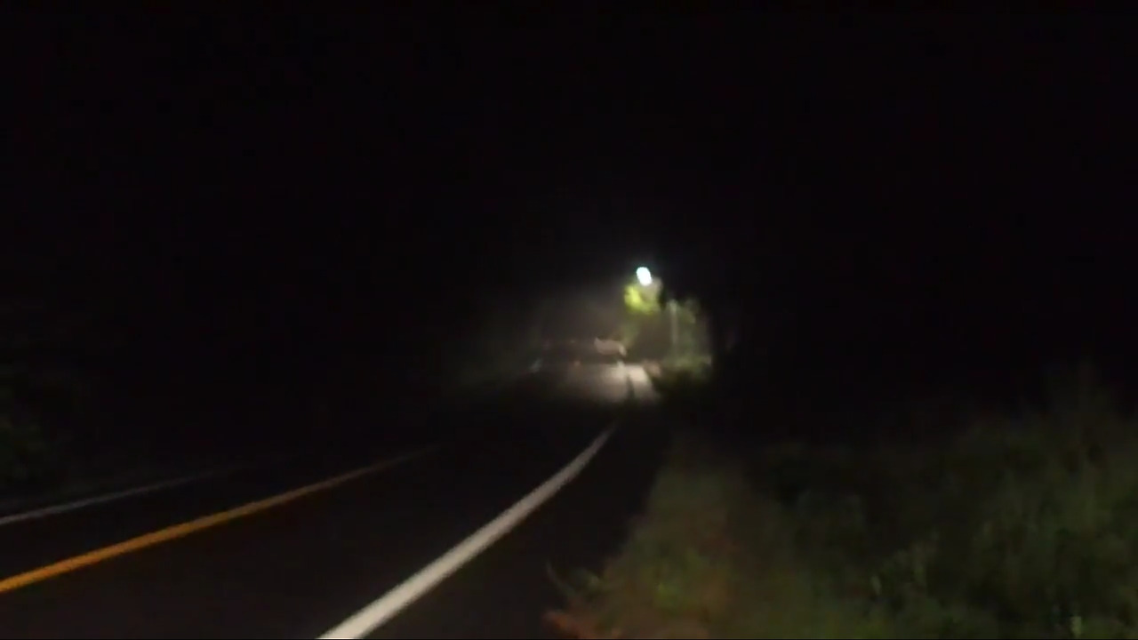 땀을 미친 듯이 흘리고, 차가운 비바람을 맞고, 감기에 걸린 듯이 몸을 떨면서 영실입구를 향해 올라가다가 가로등을 발견해서 이게 얼마만의 불빛이냐며 기분이 좋아서 영상을 찍고 있었다. 그런데 그때, 갑자기 오른쪽 숲에서 "끼이아아아악!!!" 하는 여성의 비명소리가 울려 퍼졌다. 순간 놀라서 시밤쾀! 하고 자전거를 끌어안고 자빠졌다. 온몸에 소름이 돋은 채로 소리 난 부근으로 고개를 돌려보니 거긴 등산로도, 가로등도 하나 없는 컴컴한 숲이었다. 정말이지.. 아무것도 보이지 않는 칠흑 같은 어둠이 내린 곳이었고, 아무도 있을 수가 없는 시간대였다.