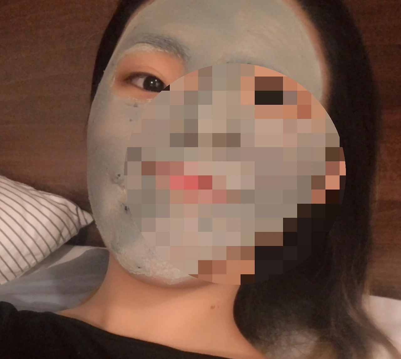 블루베리 팩이라서 얼굴을 보라색을 칠한 아시아 여자애가 머리에 수건 감고 들어오니까 웃겼던 건지,