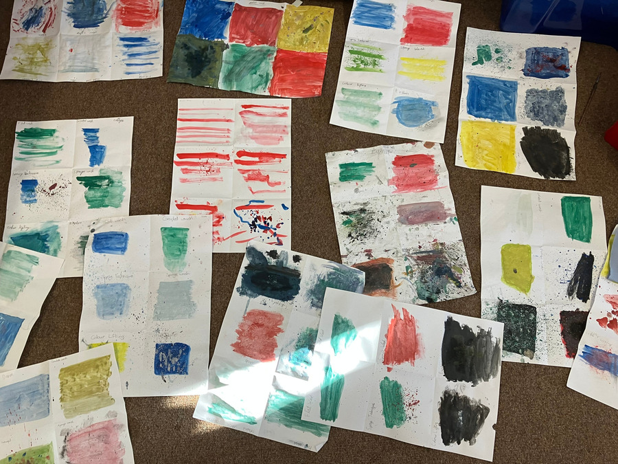 미술 커리큘럼 검토: 미술 담당 선생님이 와서 함께 미술 커리큘럼을 살펴보았고, 수채화 기법에 대해 배웠다. 각자 테이블에 앉아 수채화 브러시 스트로크를 배우고 직접 시도해 보았다.