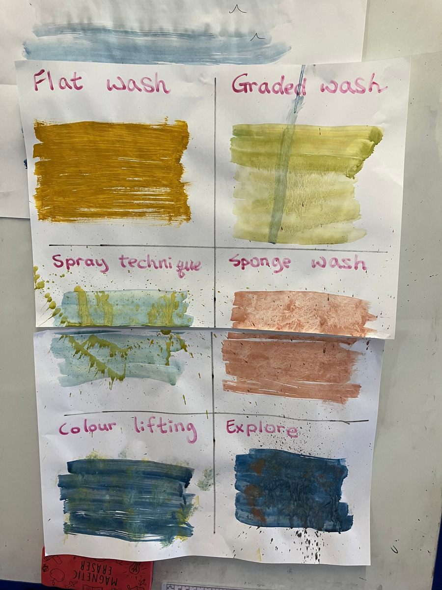 두 번째 단계: 내가 수채화 브러시 스트로크를 가르치고 아이들에게 종이에 직접 해 보도록 했다.
