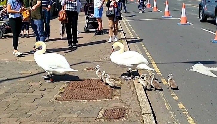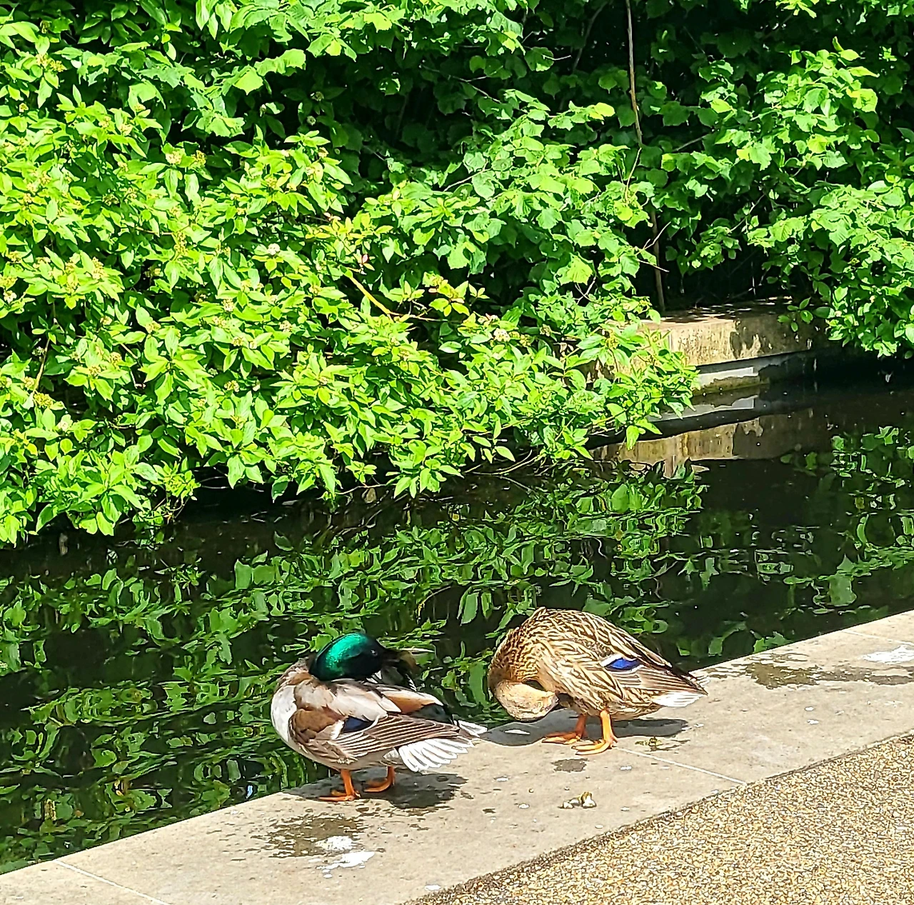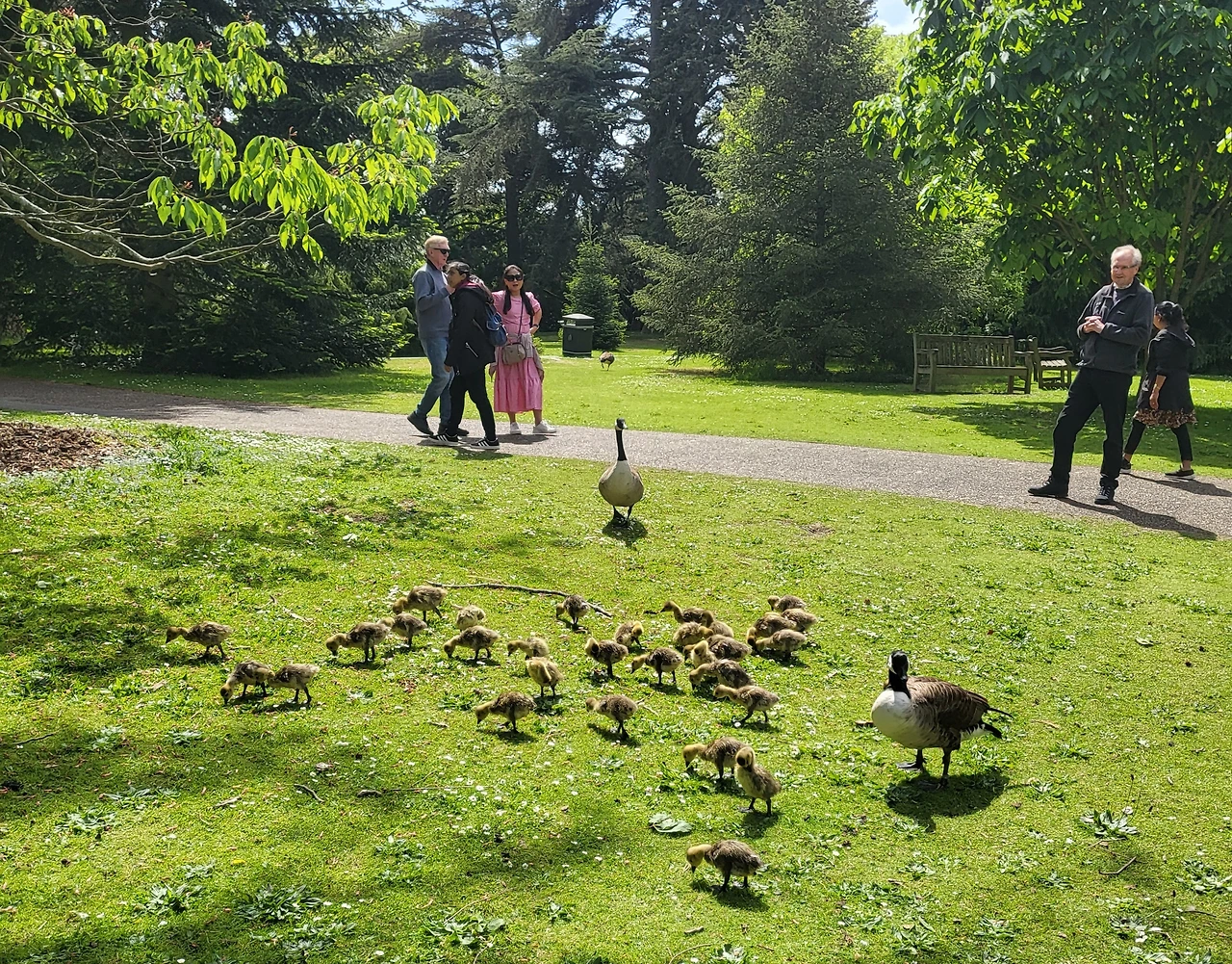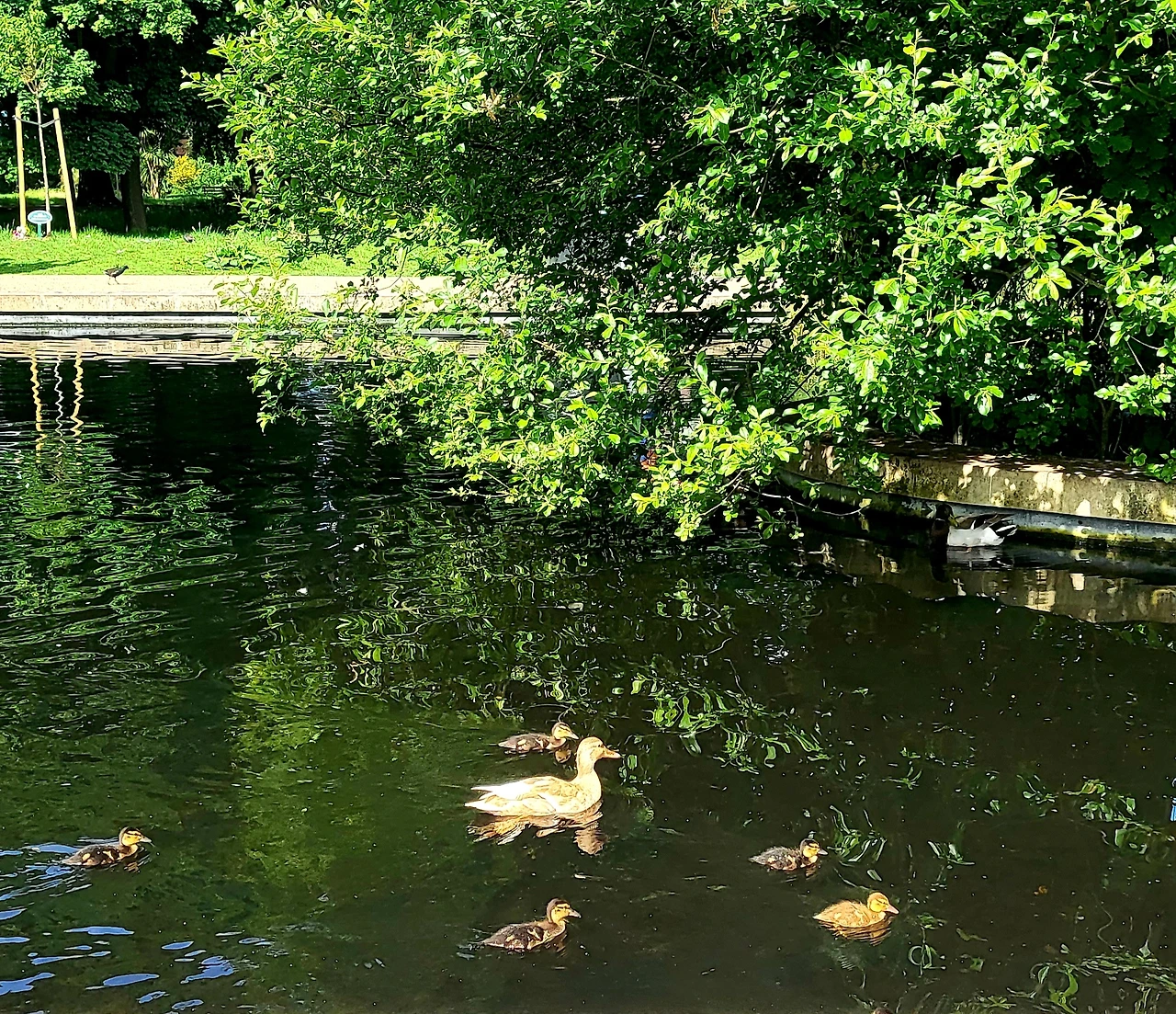 게다가 5월의 봄은 새끼들이 깨어나는 계절이다. 아기 백조들은 회색, 캐나다구스의 새끼는 회색빛이 도는 노란색이다. 청둥오리 새끼는 노랑과 갈색, 암적색의 무늬가 있다. 보송보송 솜털로 뒤덮인 아기새들이 뒤뚱거리며 어미를 따르는 모습을 보면 절로 엄마미소가 지어진다. 적게는 2~3마리, 많게는 30여 마리까지 봤다. (아직도 그것이 모두 한 부모가 낳은 새끼인지 의심스럽다. 새들도 공동육아를 하는 것일까?)