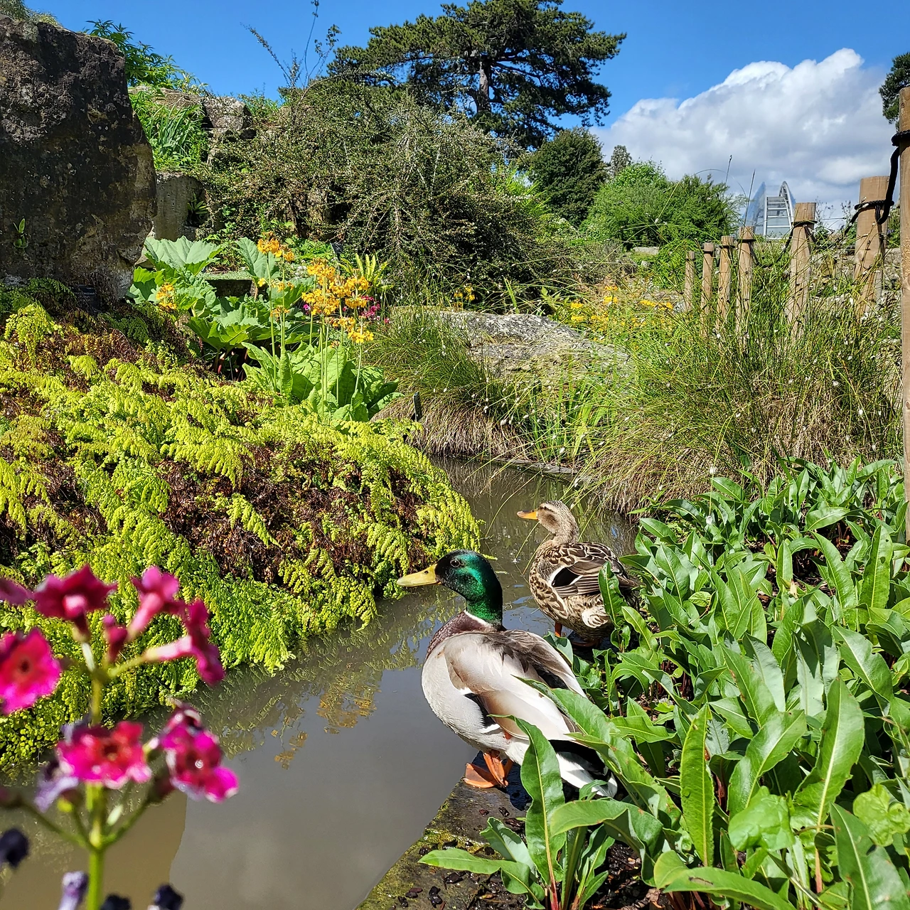 가끔씩은 오리들과 중닭 정도 사이즈의 검은색 물닭(Coot)들이 영역다툼을 하기도 한다. 대체로는 덩치가 작은 물닭이 물러나는 것으로 금방 끝난다.