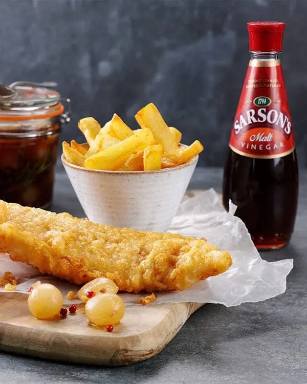 피쉬 앤 칩스는 갓 튀겨서 뜨거운 상태에서 살짝, 몰트 비니거를 뿌린다. 칩스(감자튀김)에는 말고 피쉬에만.