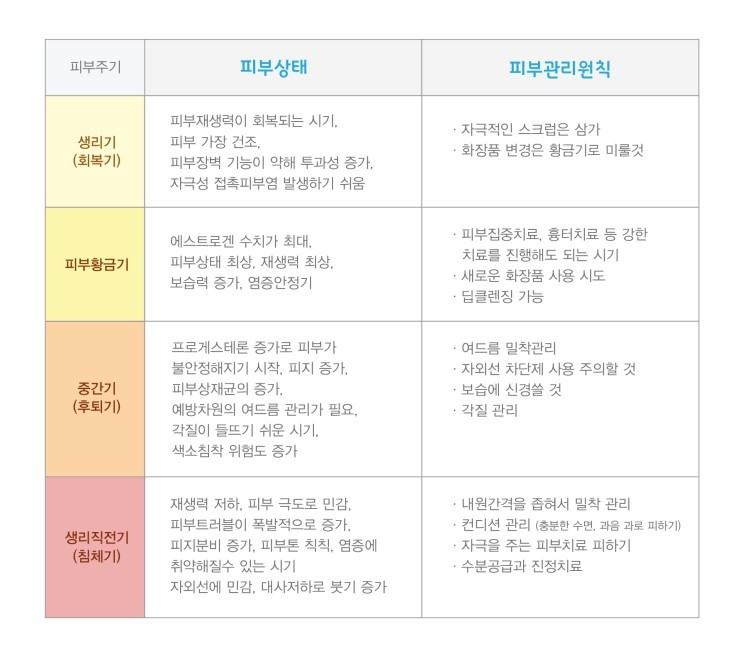피부 황금기(생리 끝난 직후부터 6일 정도)