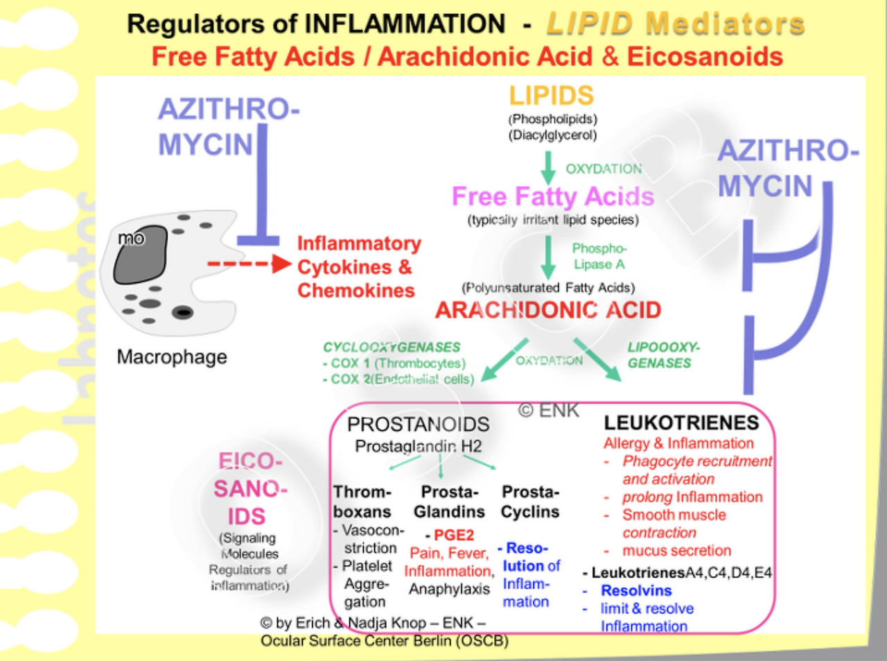 염증을 악화시키는 면역 반응에 가장 중요한 역할을 하는 것이 바로 프로스타그란딘(prostagrandin-PGE2)과 류코트리엔(Leukotrienes)이라는 물질입니다.