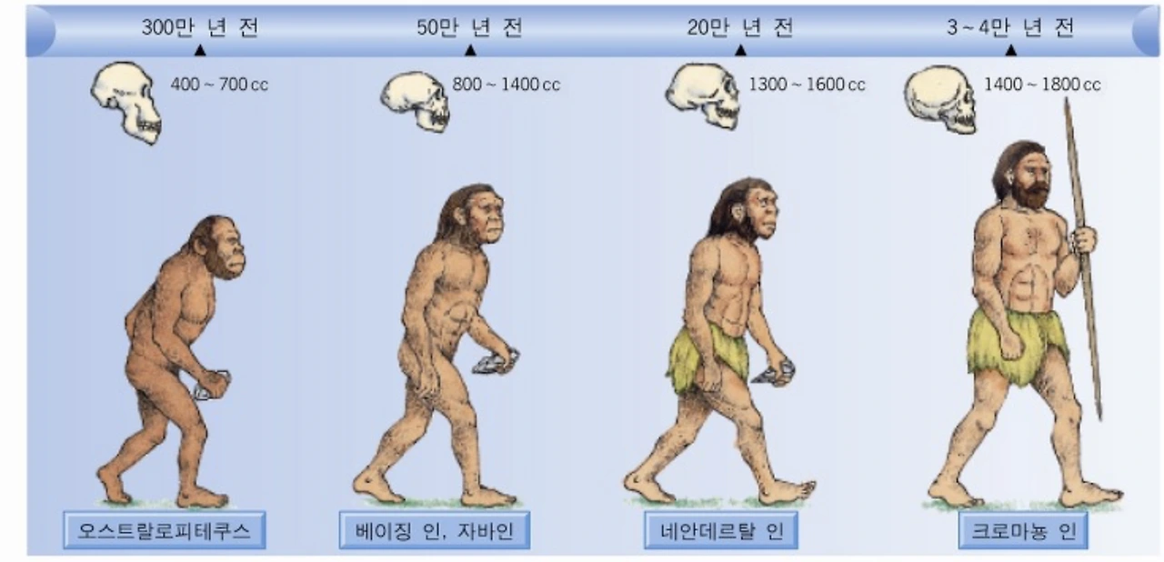 자세와 치아의 교합, 두개골의 변화의 관련성은 원시인류에서 현생인류의 체형과 안모의 변화 과정을 보면 상당 부분 유추해볼 수 있습니다. 구부정한 척추 자세로 라운드숄더, 엉덩이 후만을 갖고 있으며 얼굴이 중심선의 앞에 위치해 있는 오스트랄로피테쿠스는 하악이 길고 돌출되는 모양을 갖고 있고, 현생인류와 비슷한 자세를 가진 크로마뇽인은 하악이 짧아졌으며 치아도 후방으로 이동한 얼굴형을 갖고 있습니다.